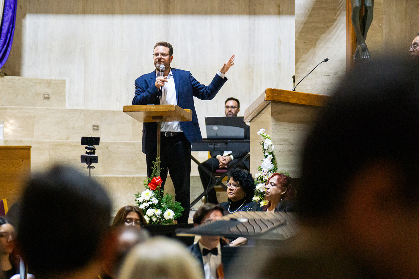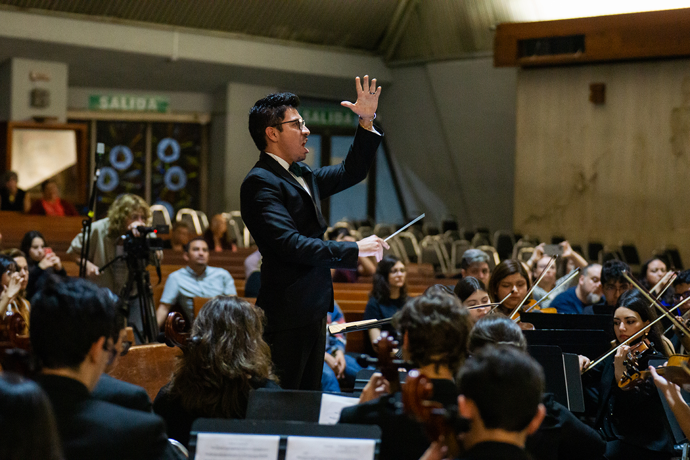 En un mano a mano, el Maestro Ricardo Marcos González, Secretario Técnico del Consejo para la Cultura y las Artes de Nuevo León, organismo colaborador en la segunda edición del Festival y la Orquesta Filarmónica Juvenil de Nuevo León y la Unión de Coros Sacros de Monterrey, con la batuta invitada del Maestro Gerardo Rocha Ovando, hicieron único el concierto-conferencia “Dios Lo Oye”.