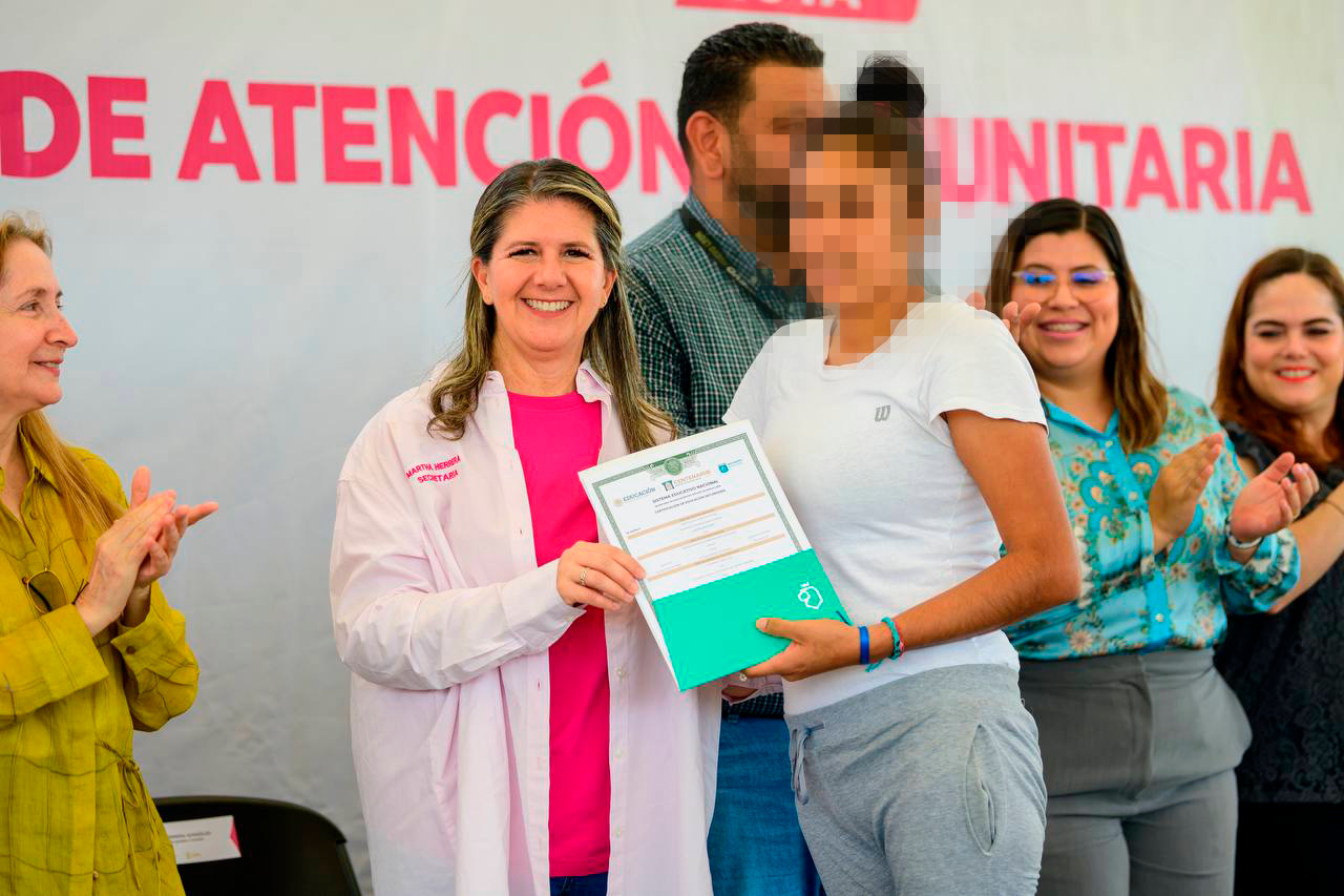 Además, como parte de la Vía de Educación, “La Nueva Ruta: Te lleva a la Escuela”, se entregaron 40 certificados de educación básica, en colaboración con la Coordinación del Sistema Estatal de Educación para los Adultos (COSEA).