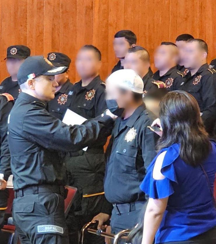 Acompañado de mandos policiacos de la institución, Gerardo Palacios Pámanes entregó reconocimientos a 13 uniformados por sus méritos en la operación policial. Además, se realizó la imposición de grados a dos policías estatales que, por sus actos heroicos, fueron ascendidos a un cargo inmediato superior.