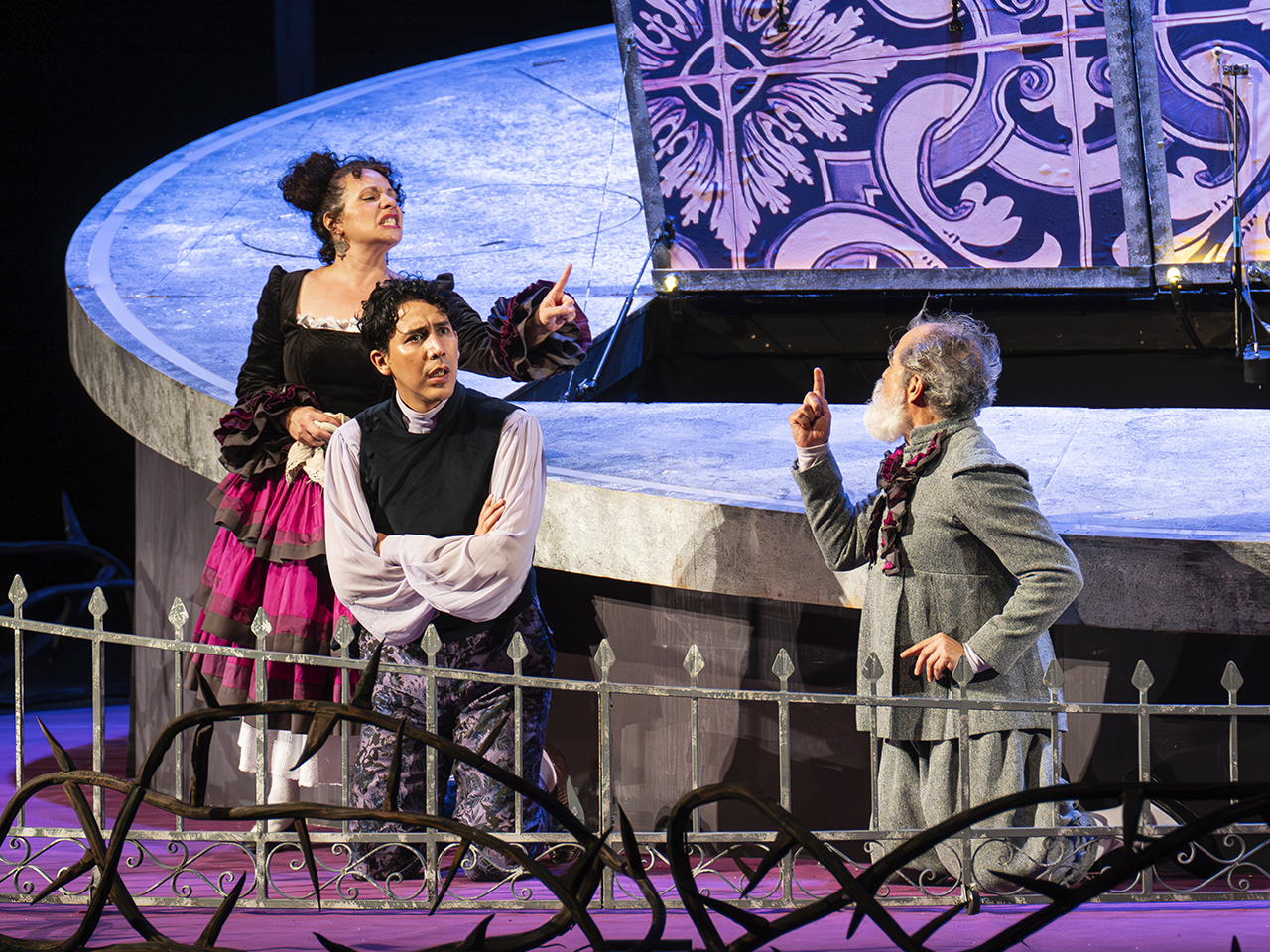 En este montaje realizado por la Compañía Nacional de Teatro para celebrar el 90 aniversario del Palacio de Bellas Artes, la música ocupa un lugar importante, ya que se entrelazan los diálogos con algunos boleros, que son interpretados por los actores y coreados por los asistentes. Este "karaoke" regio y monumental logró un ambiente de fiesta que se prolongó durante toda la representación.