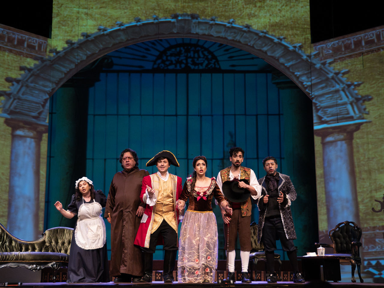 En sus roles de la ópera en corte de comedia, el extraordinario elenco salió al escenario e hizo brillar la pieza clásica de Gioachino Rossini y con ella hacer las delicias de la audiencia presentada para la celebración del Teatro de la Ciudad.