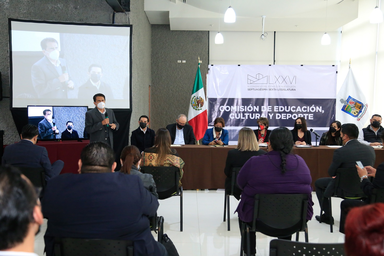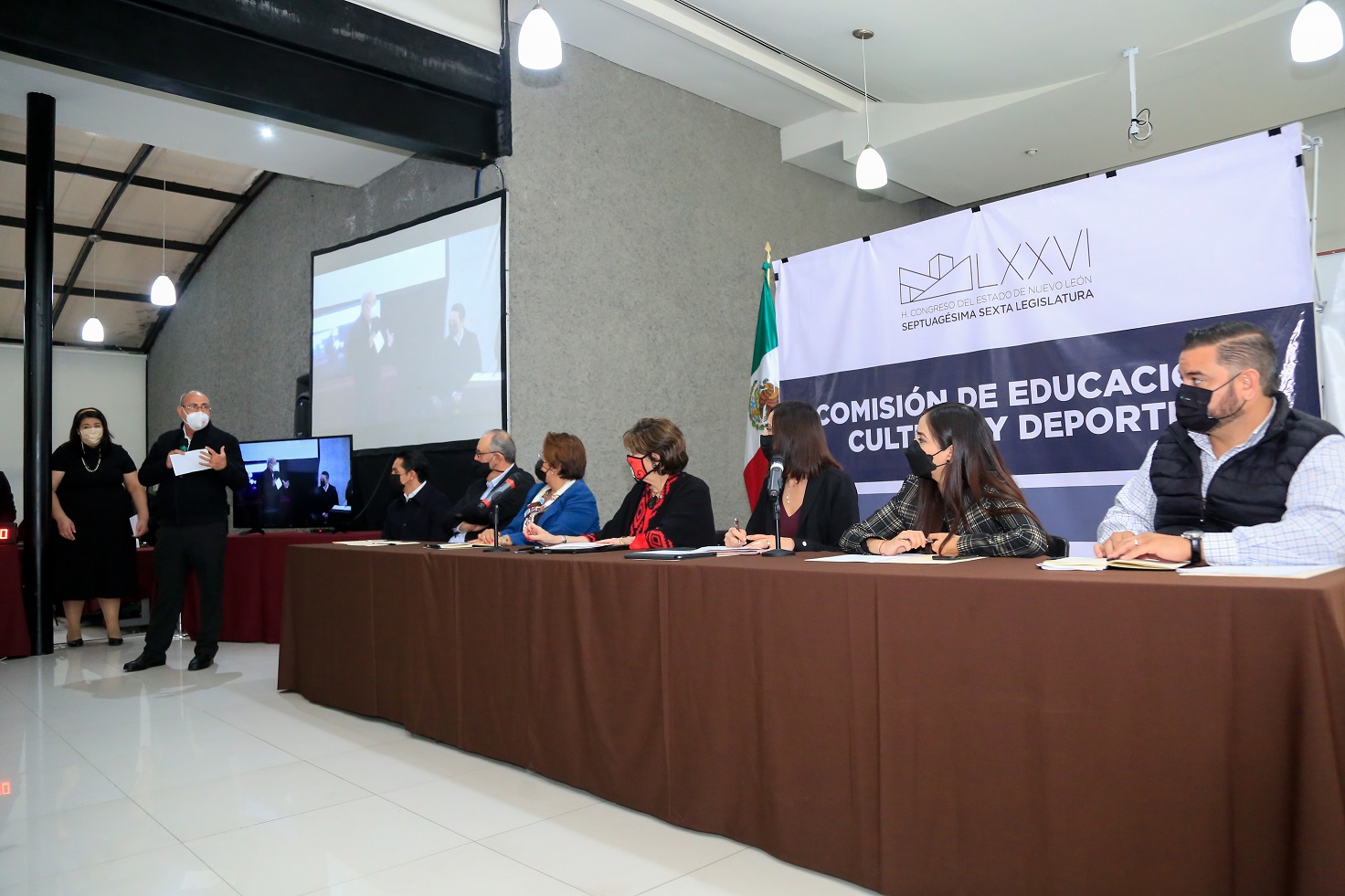 En la mesa de trabajo de la Comisión de Educación, Cultura y Deporte de la Septuagésima Sexta Legislatura; estuvieron los representantes de la Asociación Estatal de Padres de Familia, Unión Neolonesa de Padres de Familia, Instituto Nacional de Consultoría Familiar y Federación de Escuelas Particulares de Nuevo León. Así como los líderes sindicales de las Secciones 21 y 50 de Maestros.