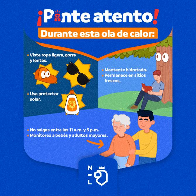 Monterrey, Nuevo León.- El Gobierno del Estado emitió una serie de recomendaciones a seguir ante las altas temperaturas que se registran en la entidad y que rebasan los 40 grados centígrados.