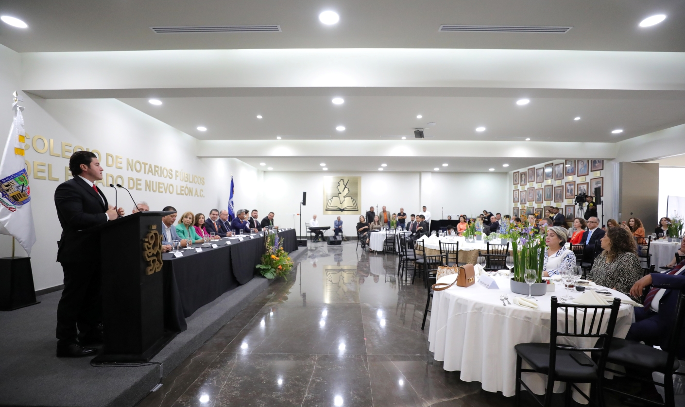 Monterrey, Nuevo León.- Ante el crecimiento económico sin precedentes que vive el Estado y para dar certidumbre jurídica a la inversionistas nacionales e internacionales, el Gobernador Samuel Alejandro García Sepúlveda planteó la necesidad de una nueva Ley de Notariado para Nuevo León.