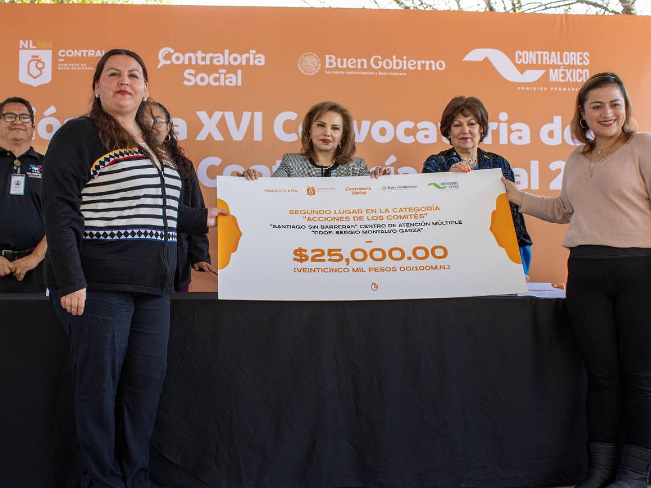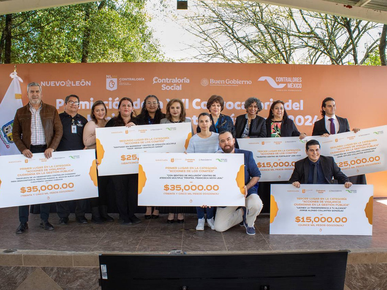 Monterrey, Nuevo León.- La Contraloría y Transparencia Gubernamental realizó la entrega de reconocimientos a los ganadores del XVI Premio Nacional de Contraloría Social 2024, en su etapa estatal.