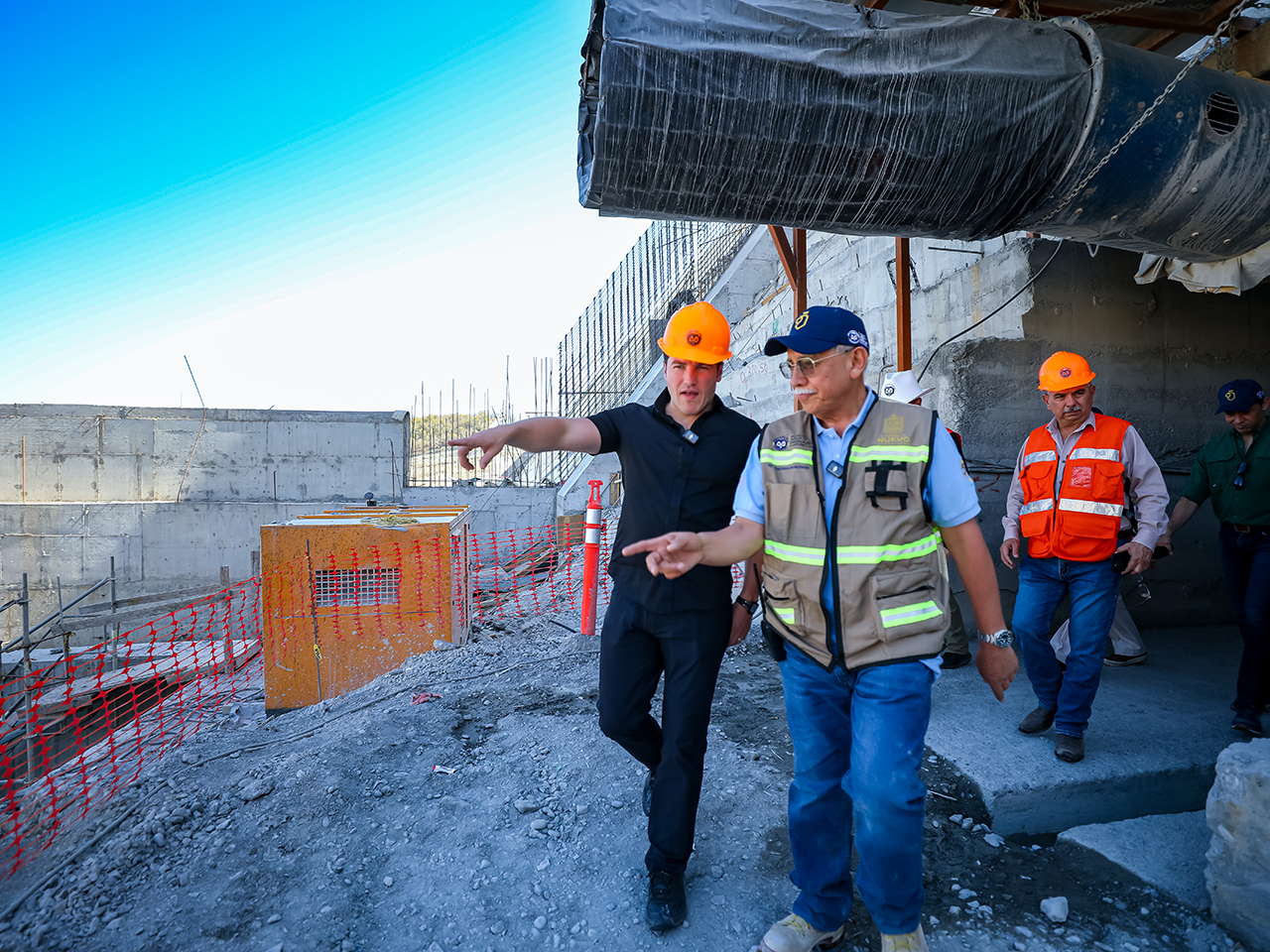 Ante personal de Agua Drenaje de Monterrey encabezados por su director Juan Ignacio Barragán, el Gobernador agradeció en su visita a todas y todos los que participaron en la obra las interminables jornadas de trabajo que implementaron para concluir este gran proyecto para los ciudadanos de Nuevo León.