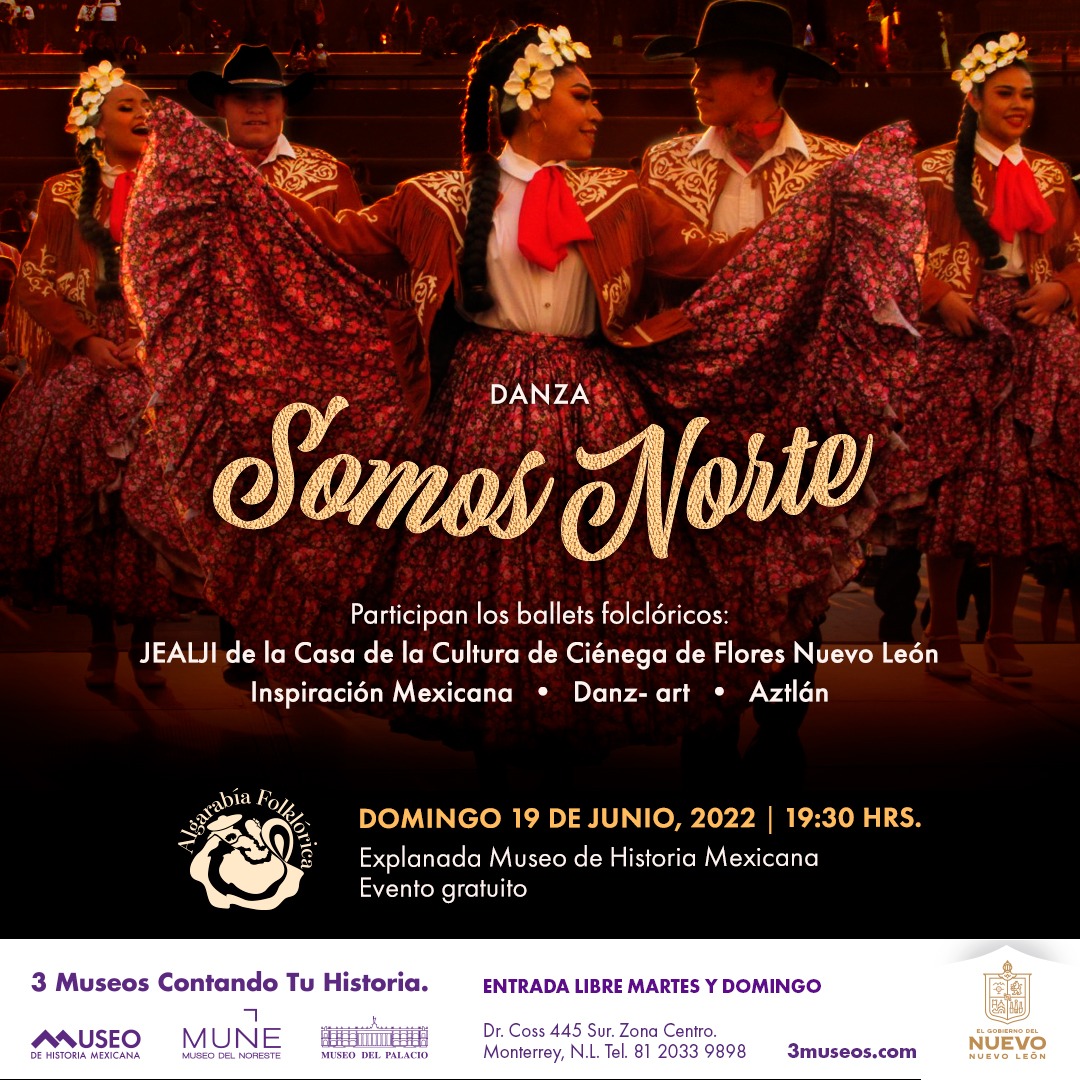 Son de México Programa: Fandango y Huapango y Algarabía Folklórica. Somos Norte se realizarán en la explanada del Museo de Historia Mexicana. Para más información visite la página www.3museos.com o póngase en contacto a través de las redes sociales de 3Museos.