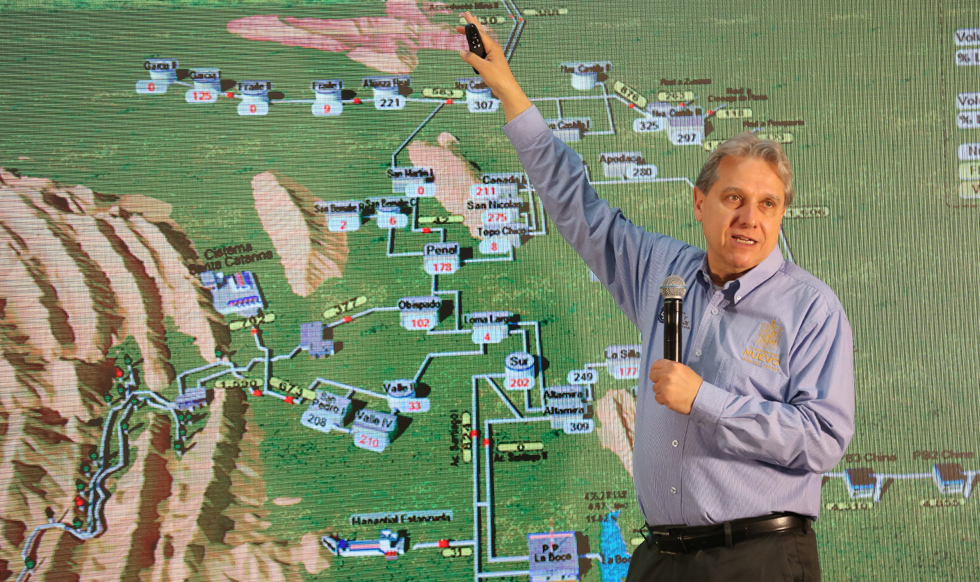 El Director General de AyD, Juan Ignacio Barragán, señaló que en los últimos días fueron conectados 5 nuevos pozos y se estima que para el mes de agosto estén incorporados un total de 132, que dotarán de 3 mil 374 litros por segundo a la red de distribución aproximadamente.