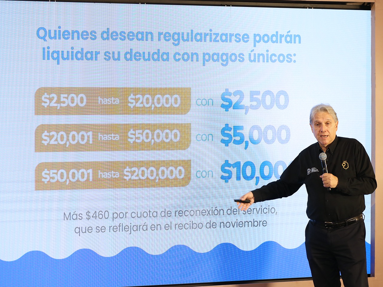 Barragán detalló qué, los adeudos de hasta $20,000 pesos se podrán liquidar con $2,500. Mientras que, las cuentas de hasta $50,000 pesos se saldarán con $5,000 y, por último, los usuarios con deuda de hasta $200,000 pesos deberán pagar $10,000.
