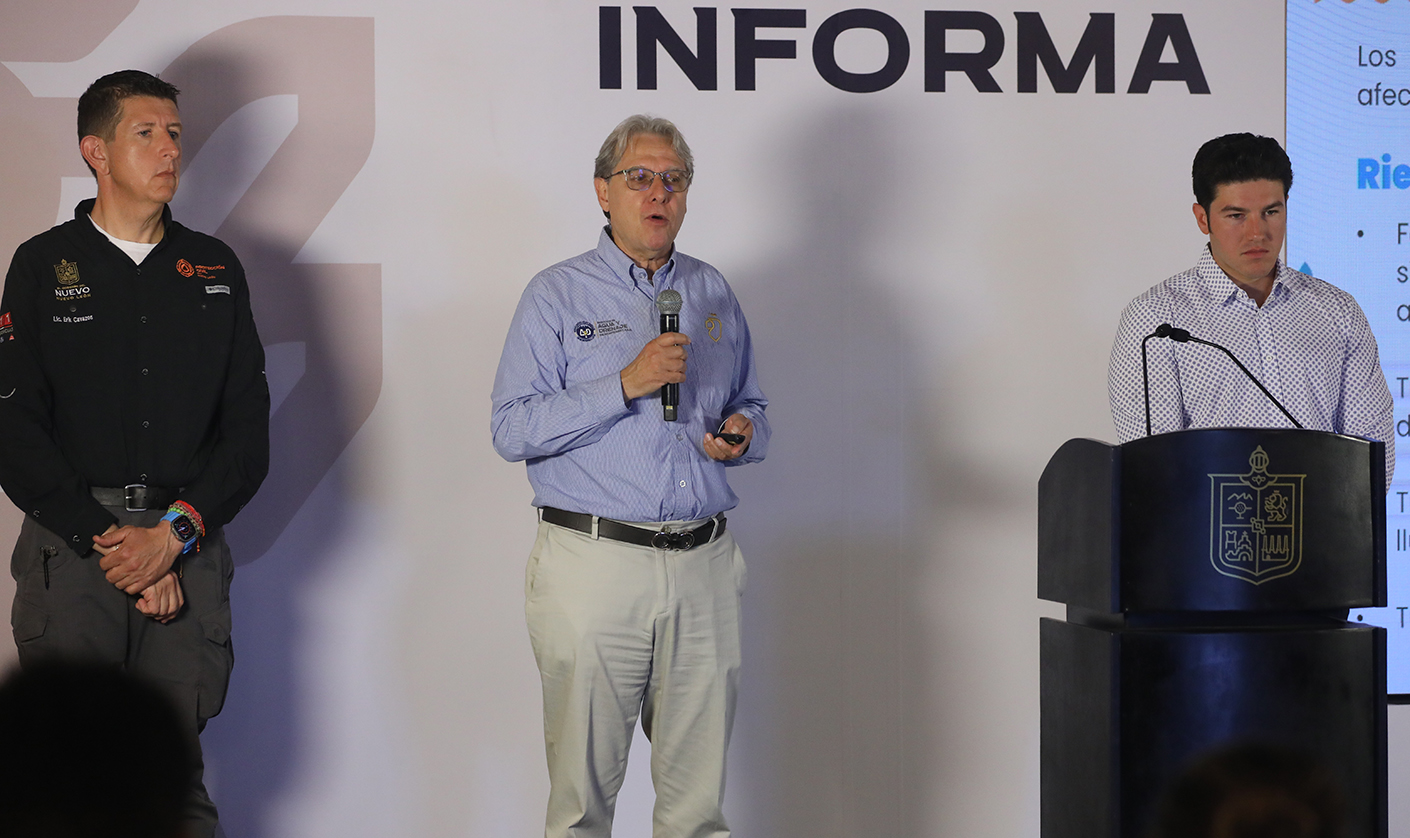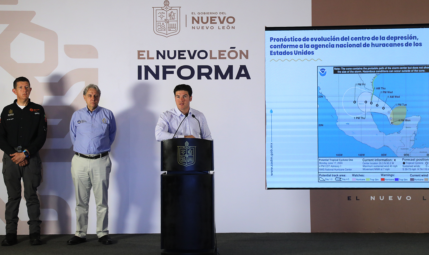 Monterrey, Nuevo León.- Tras los pronósticos de una depresión tropical en el Golfo de México que se dirige al noreste, el Gobernador de Nuevo León, Samuel Alejandro García Sepúlveda presentó las acciones que se realizan desde Gobierno para mitigar los efectos de este fenómeno que de acuerdo con avisos oficiales podría convertirse en tormenta tropical.