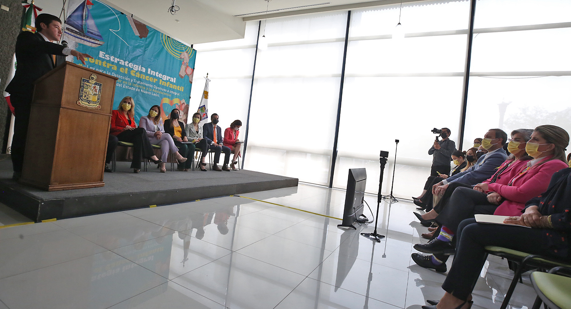 Teniendo como testigo al Mandatario estatal y a su esposa, Mariana Rodríguez Cantú, de Amar a Nuevo León, la fracción parlamentaria de Movimiento Ciudadano la Iniciativa de Ley para la Detección y Tratamiento Oportuno e Integral del Cáncer a la Infancia y la Adolescencia del Estado de Nuevo León.
