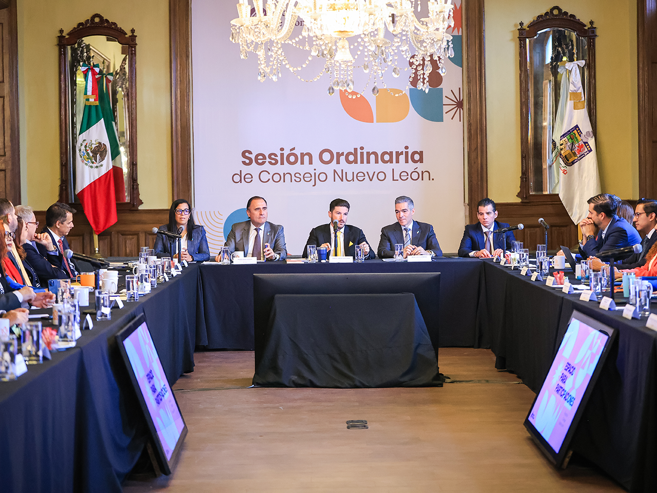 Monterrey, Nuevo León.- El Gobernador del Estado, Samuel Alejandro García Sepúlveda presentó este miércoles al Consejo Nuevo León la estrategia Ponte Nuevo, Ponte Mundial; sesión en la que asumió como presidente de este órgano colegiado, Andrés Garza Herrera.