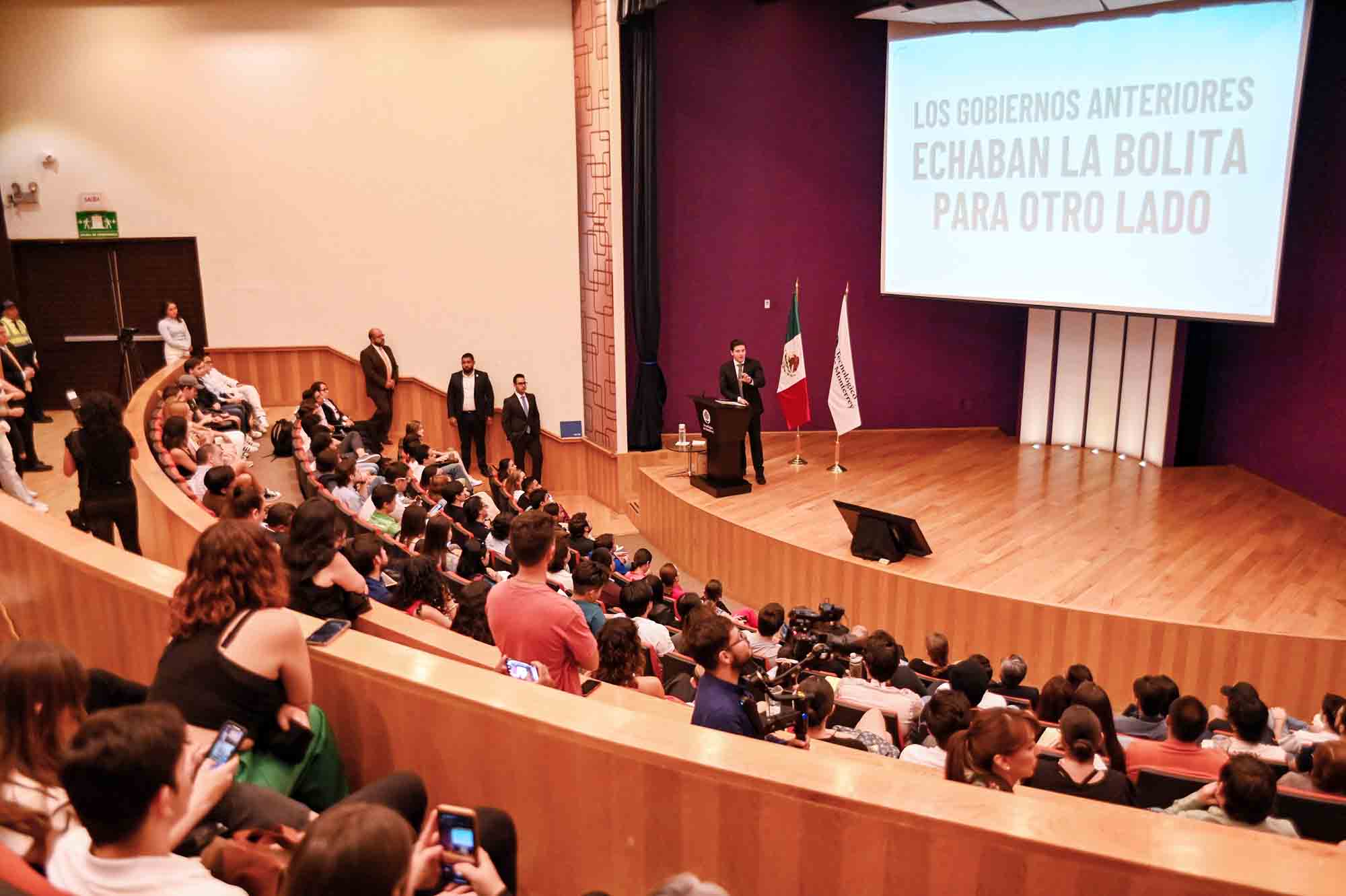 Durante su presentación ante estudiantes y académicos del campus, el Mandatario estatal lamentó que actualmente los Estados solo reciban el 16 por ciento de la recaudación y 2 mil 500 municipios tan solo el 4 por ciento.