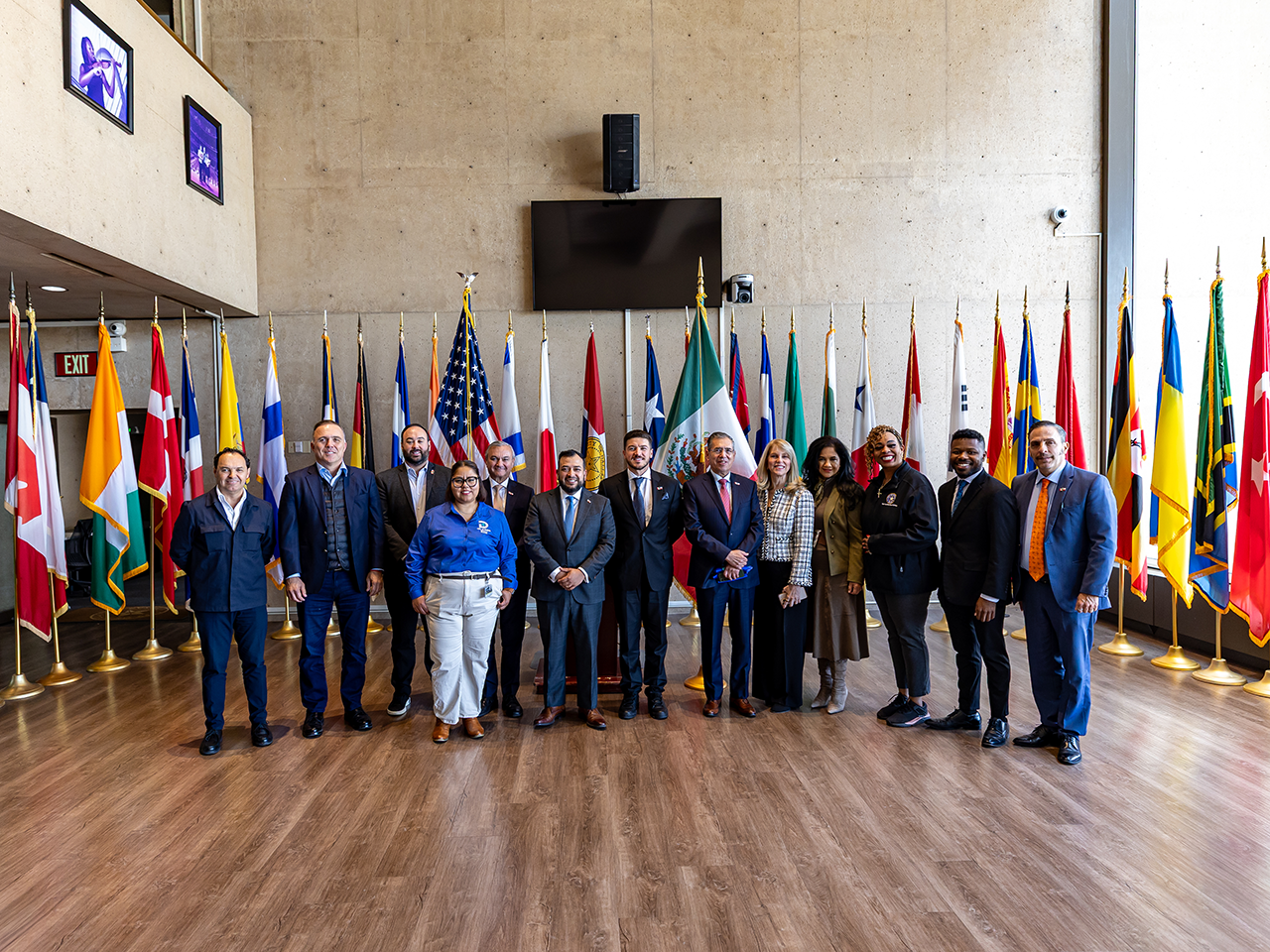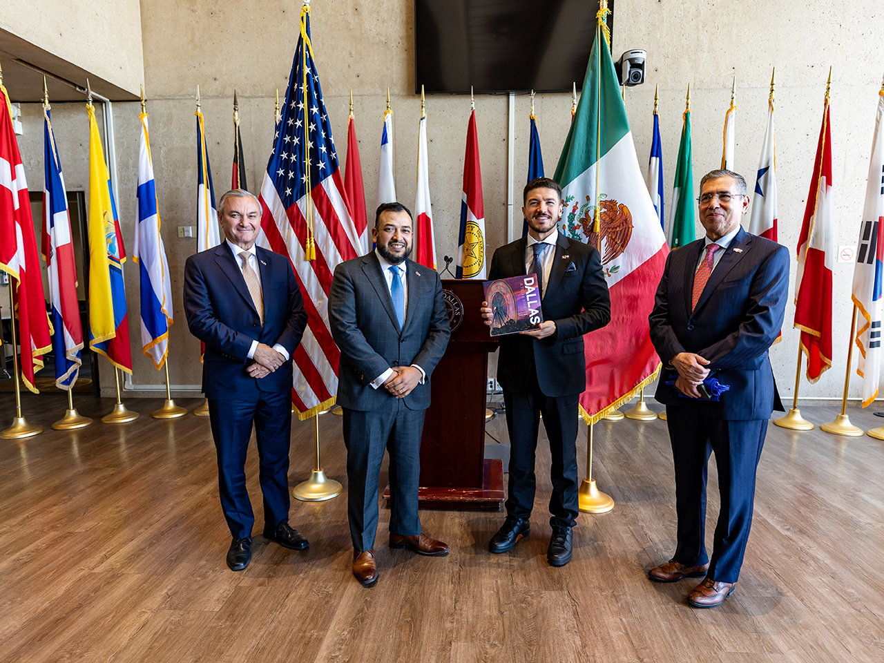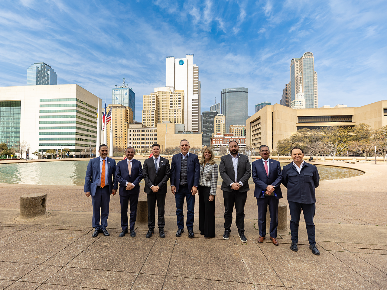 Frente al Cónsul General de México en Dallas, Texas, Luis Rodríguez Bucio, y a las Cámaras de Comercio de la región Dallas–FortWorth–Arlington, el Mandatario estatal señaló que este triángulo incluye 20 partidos de la Copa del Mundo en un radio de 800 kilómetros, en el que destacan el Estadio de Monterrey con 2 partidos de playoff y 4 partidos de fase regular; el Houston Stadium con 7 partidos; el Dallas Stadium con 9 partidos, en el que se incluye la semifinal.