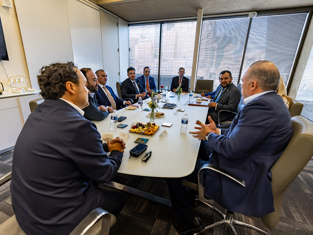 - Durante la reunión se abordaron oportunidades de colaboración, inversión y desarrollo económico en el marco de la Copa Mundial de la FIFA 2026, asimismo la coordinación binacional en materia de turismo, infraestructura, logística y atracción de negocios.
