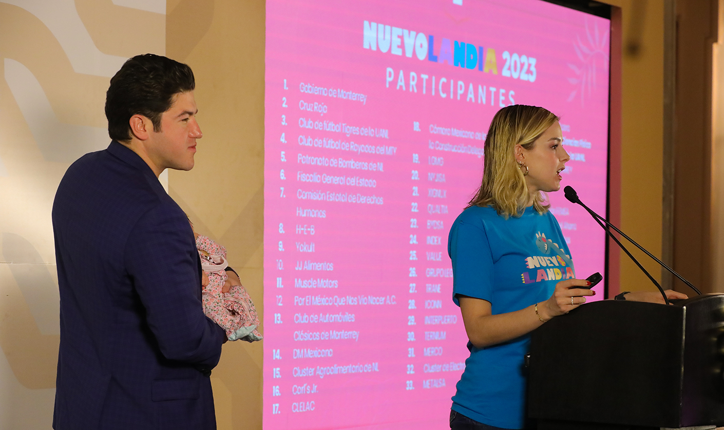 El Gobernador Samuel Alejandro García Sepúlveda y su esposa Mariana Rodríguez Cantú, de Amar a Nuevo León anunciaron “NuevoLandia 2023”, con el que el Gobierno del Estado festejará a las y los niños los días 29 y 30 de abril en el Parque Fundidora.