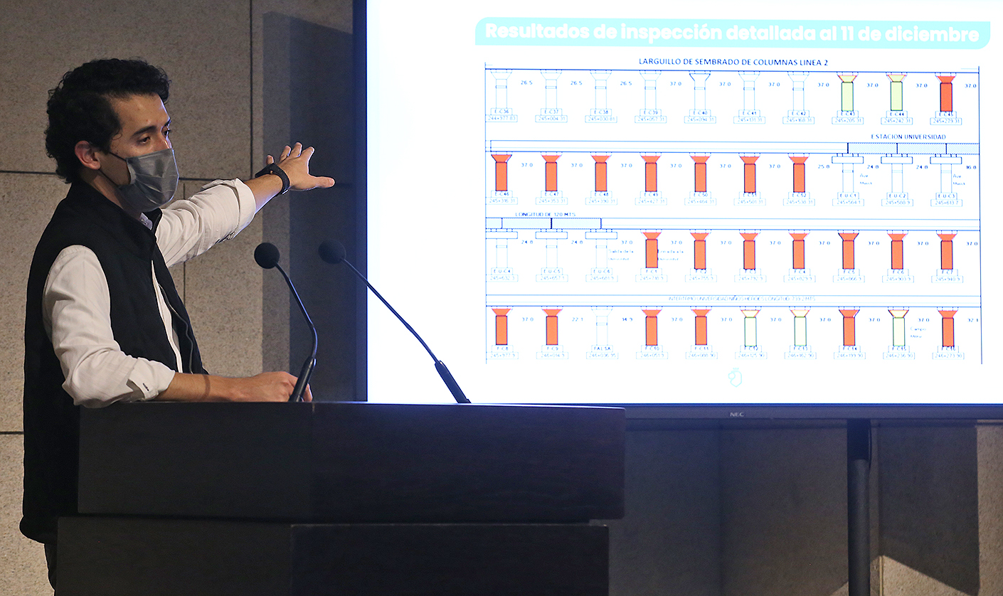 “Nos concentramos en la situación estructural de los capiteles, sin embargo dentro de este estudio, ustedes lo pueden comprobar en Compranet, incluimos la evaluación estructural, y en caso de ser necesario, el proyecto ejecutivo de reforzamiento de las trabes”, informó.
