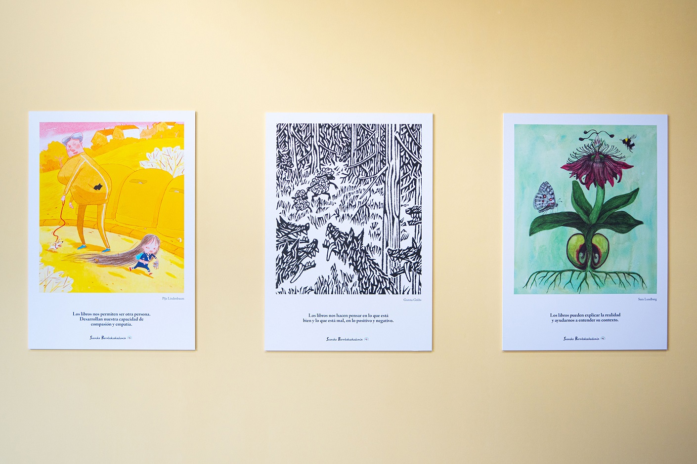 Esta muestra producida por la Academia Sueca del Libro Infantil, presenta las piezas de 17 destacados ilustradores de libros infantiles suecos, por medio de frases o citas que constituyen un homenaje a lo que los libros infantiles aportan a la vida cotidiana desde la infancia.