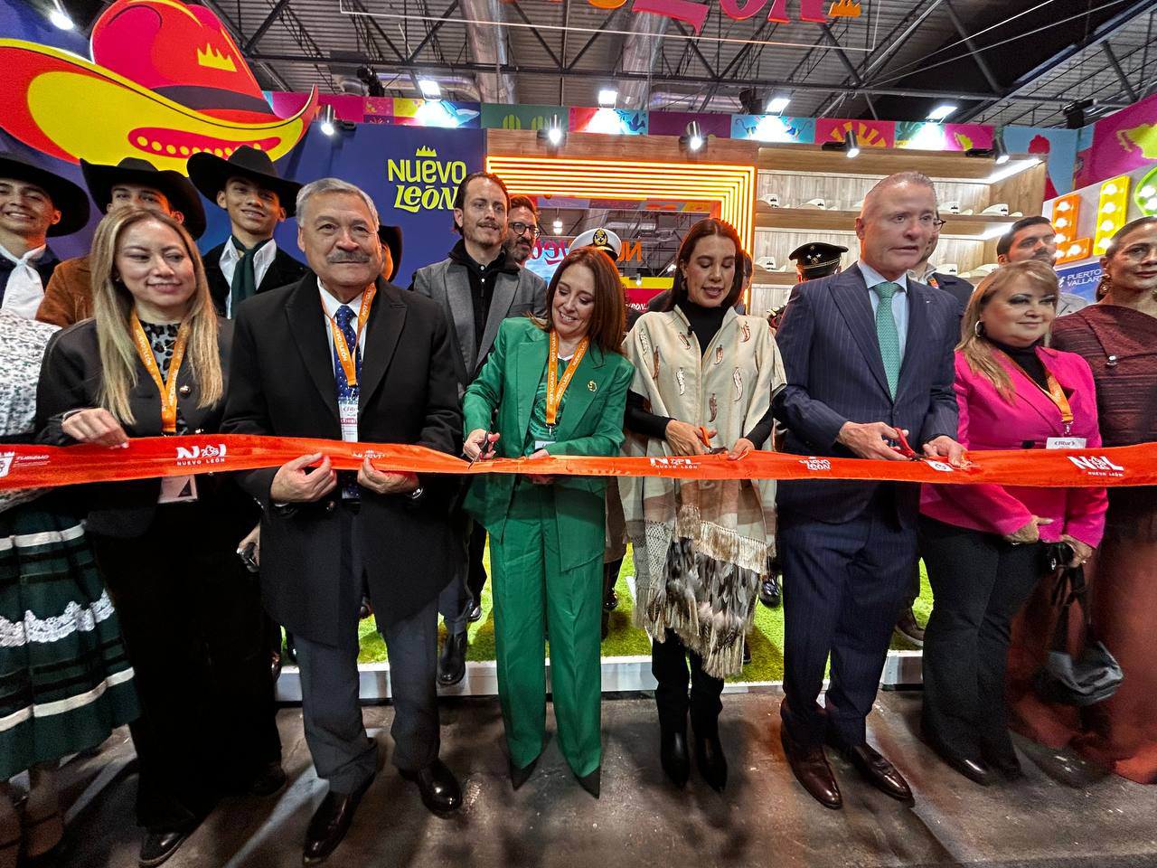 Durante el acto inaugural, la secretaria estuvo acompañada por Josefina Rodríguez Zamora, secretaria de Turismo del Gobierno de México; Quirino Ordaz Coppel, Embajador de México en España; así como autoridades estatales y municipales, entre ellas Santos Guzmán López, Rector de la Universidad Autónoma de Nuevo León; el Presidente Municipal de Santiago, David de la Peña, y la comitiva de Nuevo León.