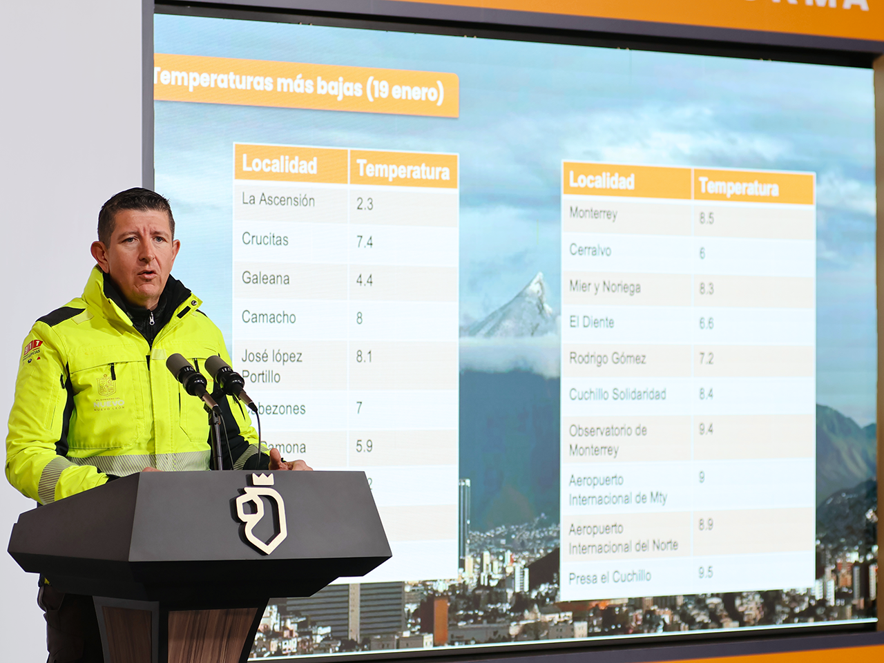 La masa ártica asociada al frente frío ocasionará temperaturas de un solo dígito desde hoy lunes hasta el viernes, alcanzando mínimos de 0 grados centígrados en el área metropolitana y de -1 grado en la sierra de Nuevo León, donde podrían registrarse agua nieve o lluvias congelantes.