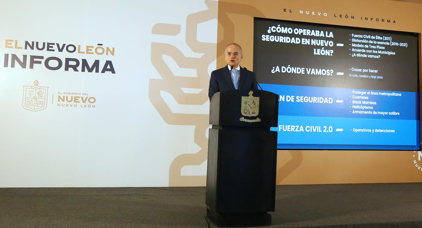 El funcionario destacó que también se logró la aprobación de la Secretaría de la Defensa Nacional a la solicitud del Gobernador Samuel García, de obtener un nuevo armamento de mayor calibre para Fuerza Civil destacamentada en zona rural para combatir al crimen organizado, además de un nuevo helicóptero para acciones tácticas-aéreas.