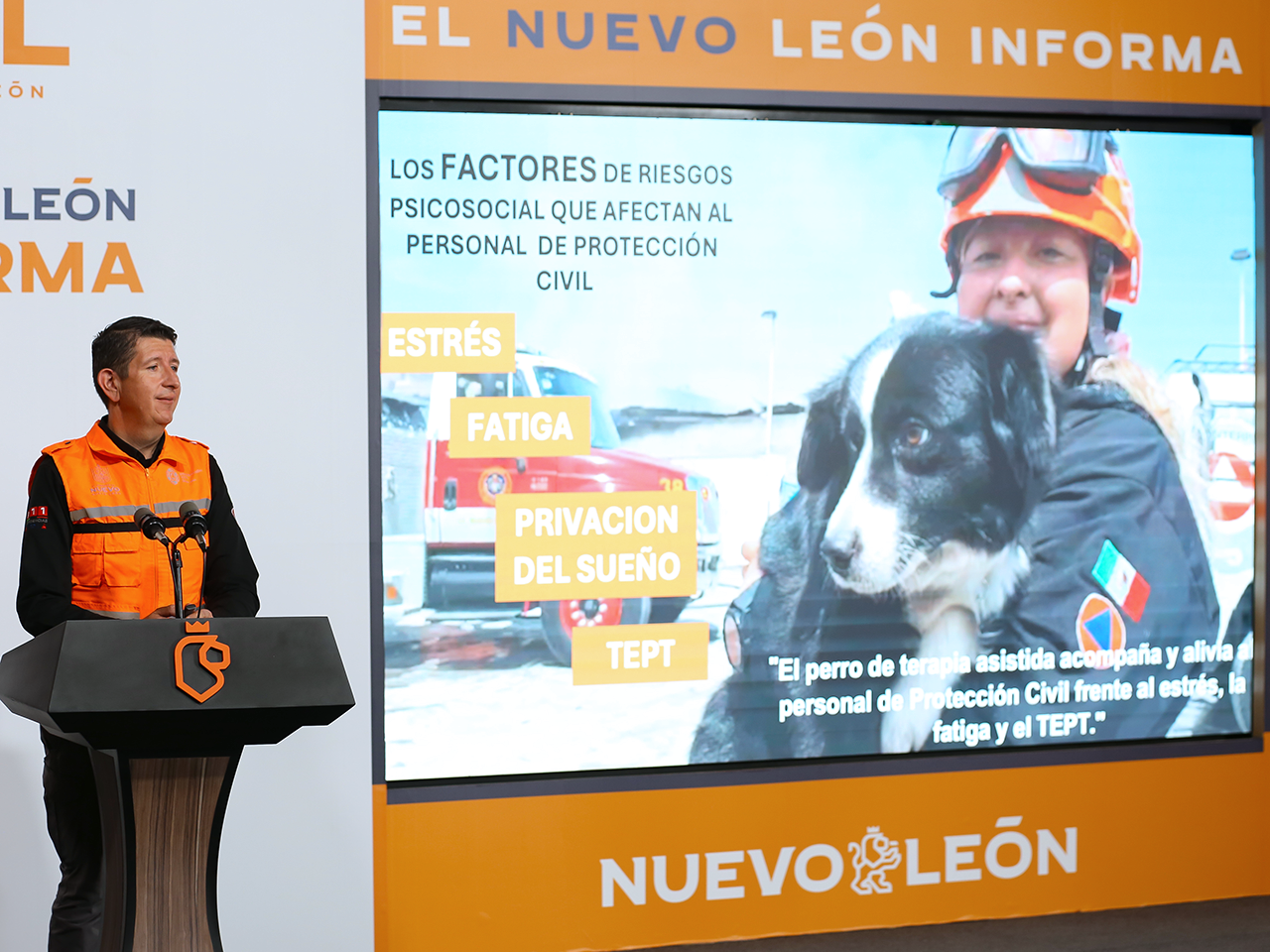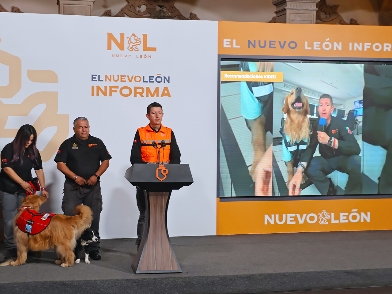 Monterrey, Nuevo León.- En el Nuevo León Informa, el Director de Protección Civil del Estado, Erik Cavazos presentó a la nueva integrante del equipo Manada K9, la cual se trata de una perrita labrador de tres meses de edad, e hizo una invitación a la población para ponerle nombre.
