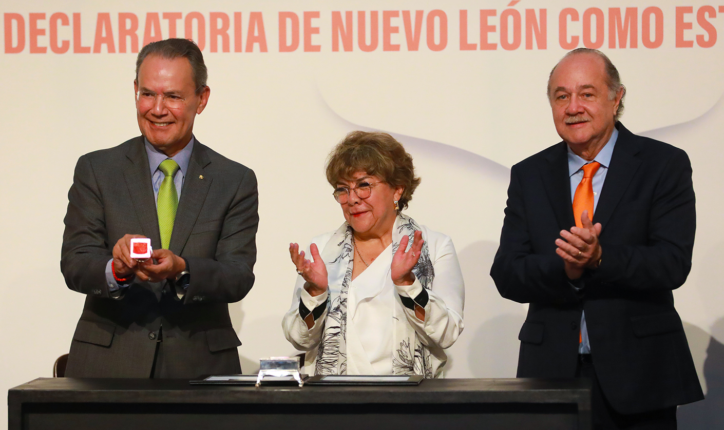 El Timbre Postal Conmemorativo de los 200 años de Nuevo León como Estado Libre e Independiente fue presentado en una ceremonia realizada en el Palacio de Gobierno.