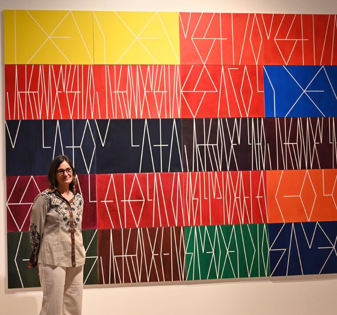 Desde 2015, la artista ha creado este conjunto de obras que interpretan las pinturas de castas a partir de los componentes básicos de la abstracción geométrica: la línea y el plano de color. En su trabajo, el mestizaje es replanteado como mezclas cromáticas, mientras que los nombres dados a las variantes raciales son transformados, mediante un nuevo alfabeto, en tramas de líneas. Así, recodifica las pinturas de castas desde una perspectiva crítica.