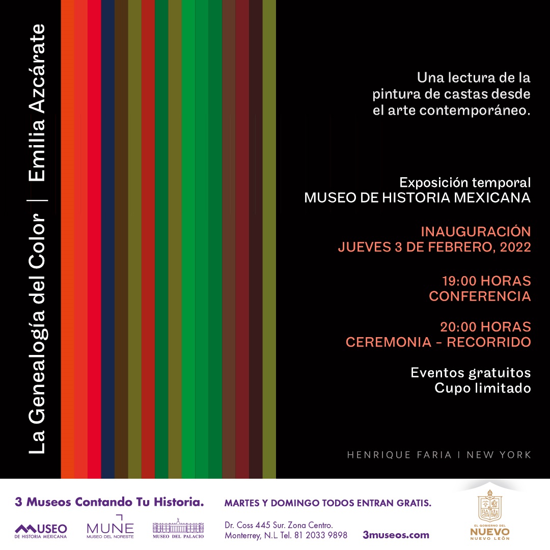 A las 20:00 horas se realizará la ceremonia inaugural y recorrido por la exposición, las personas interesadas en acudir en forma presencial deberán entrar al siguiente enlace https://www.eventbrite.com.mx/e/la-genealogia-del-color-emilia-azcarate-tickets-254893361907 y será indispensable presentarte 10 minutos antes con tu código QR impreso o digital para poder acceder al evento.