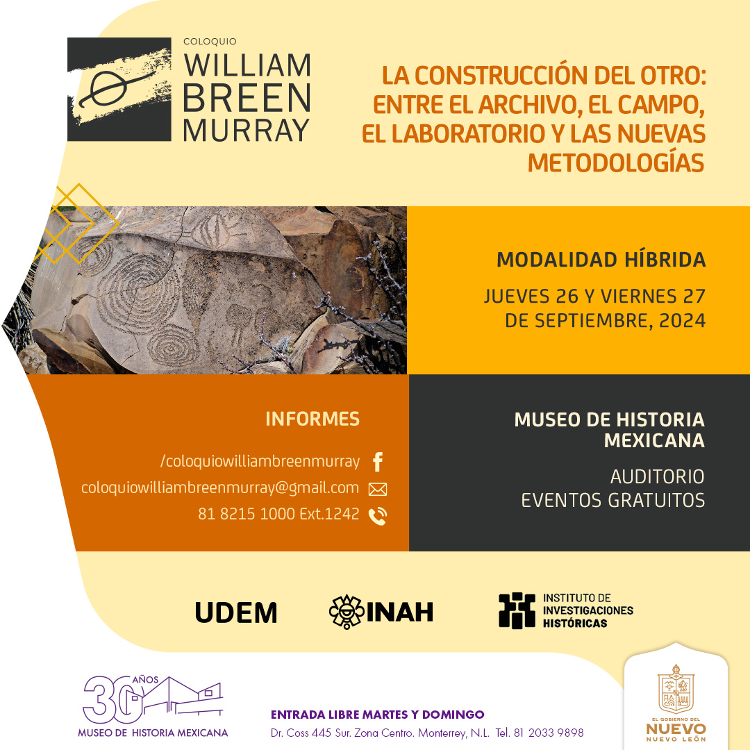 El Coloquio William Breen Murray 2024, “La construcción del Otro: Entre el archivo, el campo, el laboratorio y las nuevas metodologías”, se llevará a cabo los días 26 y 27 de septiembre en el Museo de Historia Mexicana. El acceso es libre y se puede consultar la programación en la página web: www.3museos.com.