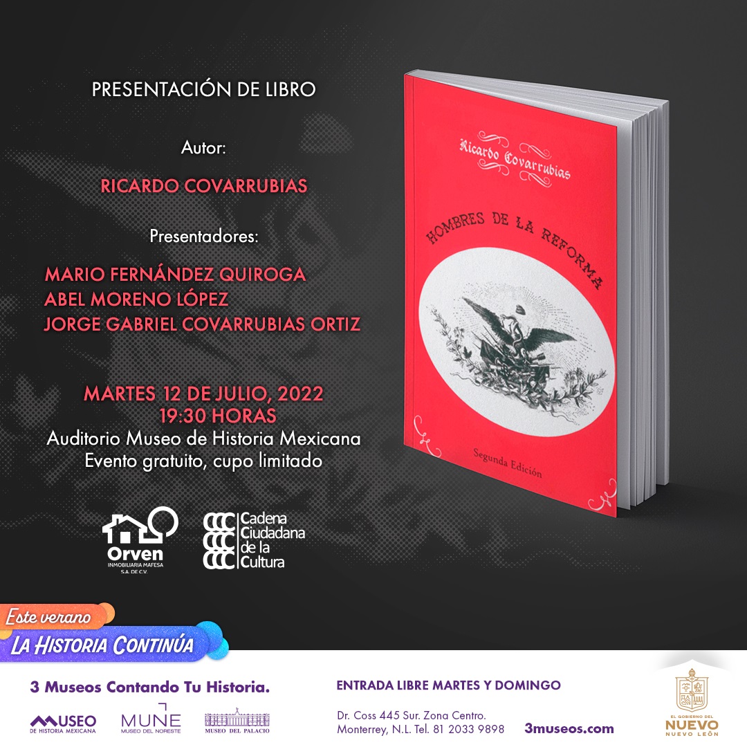 El libro Hombres de la Reforma segunda edición se presentará el martes 12 de julio a las 19:30 horas en el auditorio del Museo de Historia Mexicana, la entrada es libre, para más información puede consultar www.3museos.com