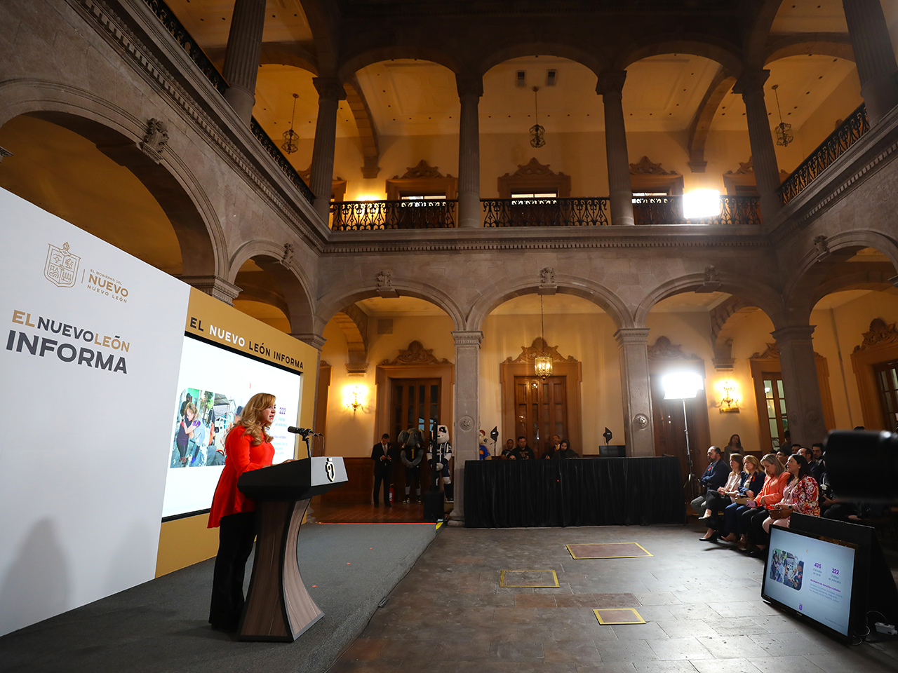 Durante el Nuevo León Informa, Buchanan Ortega aprovechó para presentar los ejes de acción para la atención y erradicación de la violencia contra las mujeres, los cuales son: contención, prevención y alianzas con actores estratégicos.