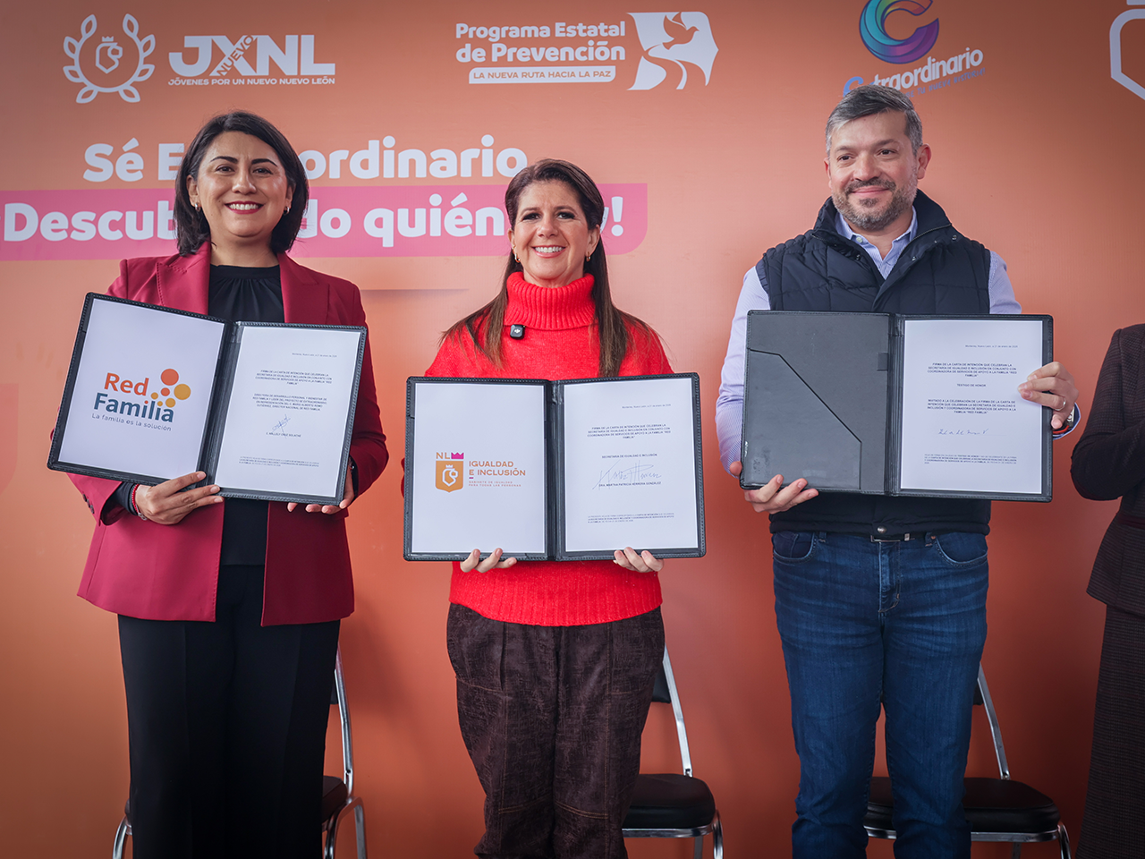 Monterrey, Nuevo León.- Para fortalecer la identidad, el desarrollo personal y el propósito de vida de las juventudes, la Secretaría de Igualdad e Inclusión y la asociación Red Familia A.C. firmaron una Carta de Intención con el objetivo de promover entornos seguros y brindar herramientas socioemocionales a la comunidad estudiantil.