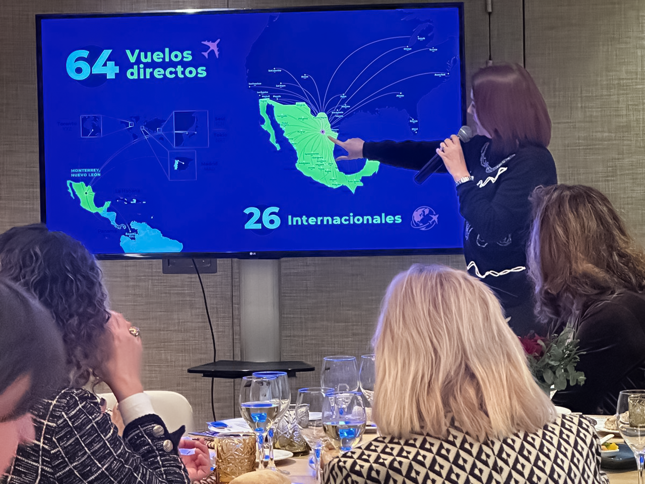 Encuentro con AMDEE: La secretaria Martínez Villarreal también lideró la presentación de Nuevo León como un destino deportivo y cultural ante líderes empresariales y mujeres directivas de alto nivel en la Asociación de Mujeres Directivas y Empresarias de España. En este espacio, destacó la riqueza turística del estado, desde sus Pueblos Mágicos hasta su capacidad de albergar eventos de talla mundial.