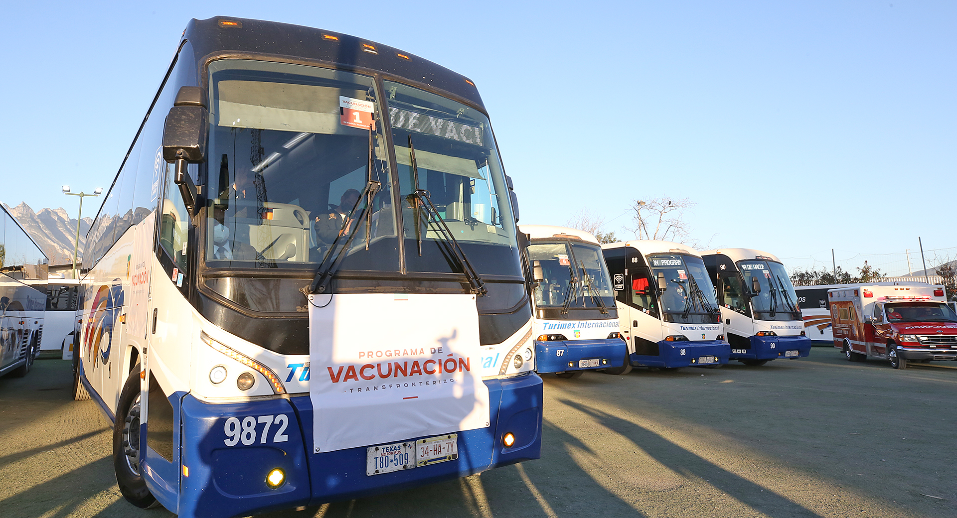 El Mandatario estatal supervisó, acompañado de su esposa la titular de la Oficina AMAR a Nuevo León, Mariana Rodríguez Cantú; y de la Secretaria de Salud, Alma Rosa Marroquín Escamilla la salida de 16 autobuses más de este programa de vacunación con el que Nuevo León es ejemplo a nivel nacional.