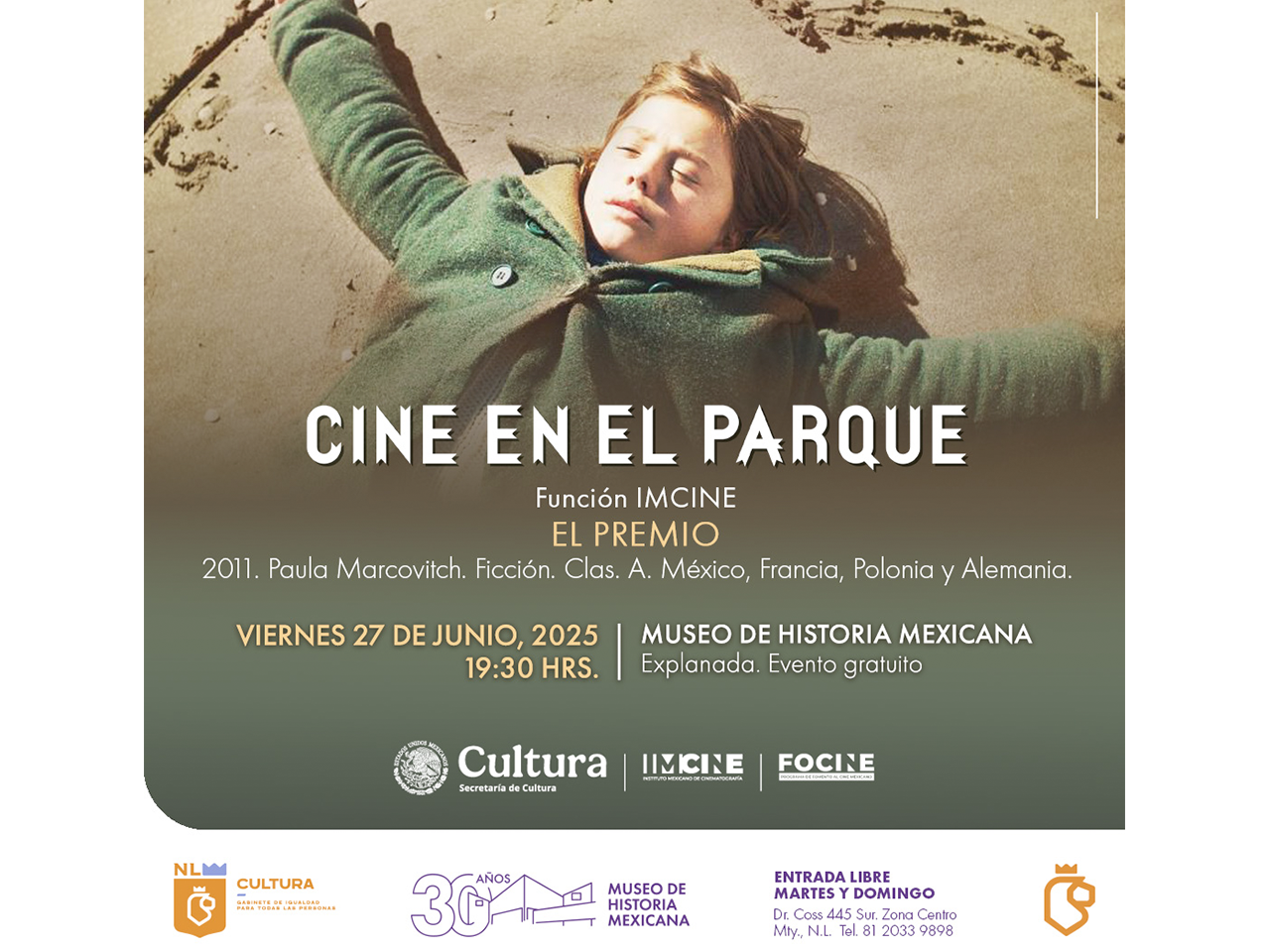Monterrey, Nuevo León.- El Museo de Historia Mexicana, en colaboración con la Secretaría de Cultura, IMCINE y el programa FOCINE, invita a la proyección de “El Premio” (2011), primer largometraje de la guionista y directora Paula Markovitch, como parte del ciclo Cine en el Parque, el viernes 27 de junio a las 19:30 horas en la Explanada del Museo.