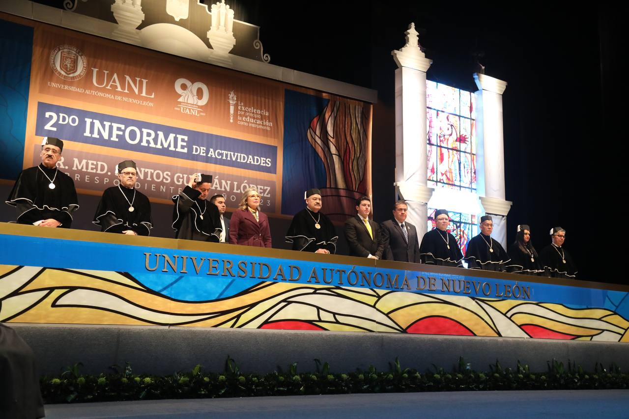 Monterrey, Nuevo León.- Al asistir al segundo informe del Rector Santos Guzmán López de la UANL, el Gobernador Samuel Alejandro García Sepúlveda reafirmó hoy el compromiso del Gobierno del Estado en su desarrollo.