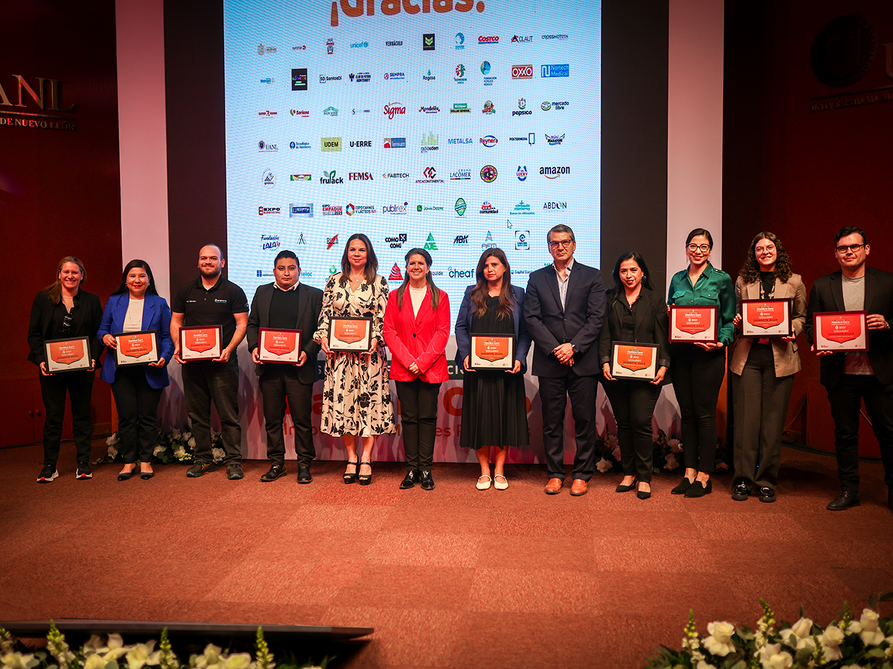 Martha Herrera, Maricarmen Martínez, Secretaría de Turismo; y Enrique Gómez Junco, Presidente de la Asociación Mexicana de Bancos de Alimentos, encabezaron la entrega del distintivo Hambre Cero Nuevo León, edición Turismo, a empresas aliadas a la causa.