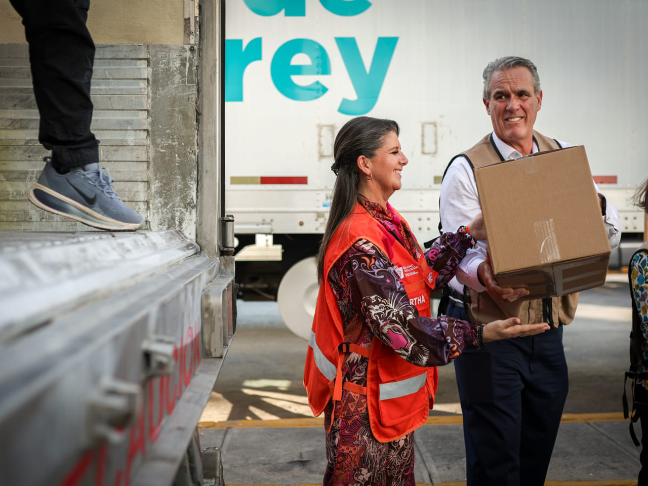 Tras la actividad, se realizó el banderazo de salida de un tráiler con aproximadamente 14 toneladas de apoyo alimentario y kits de limpieza, destinado a las familias afectadas por las inundaciones en el estado de Veracruz.