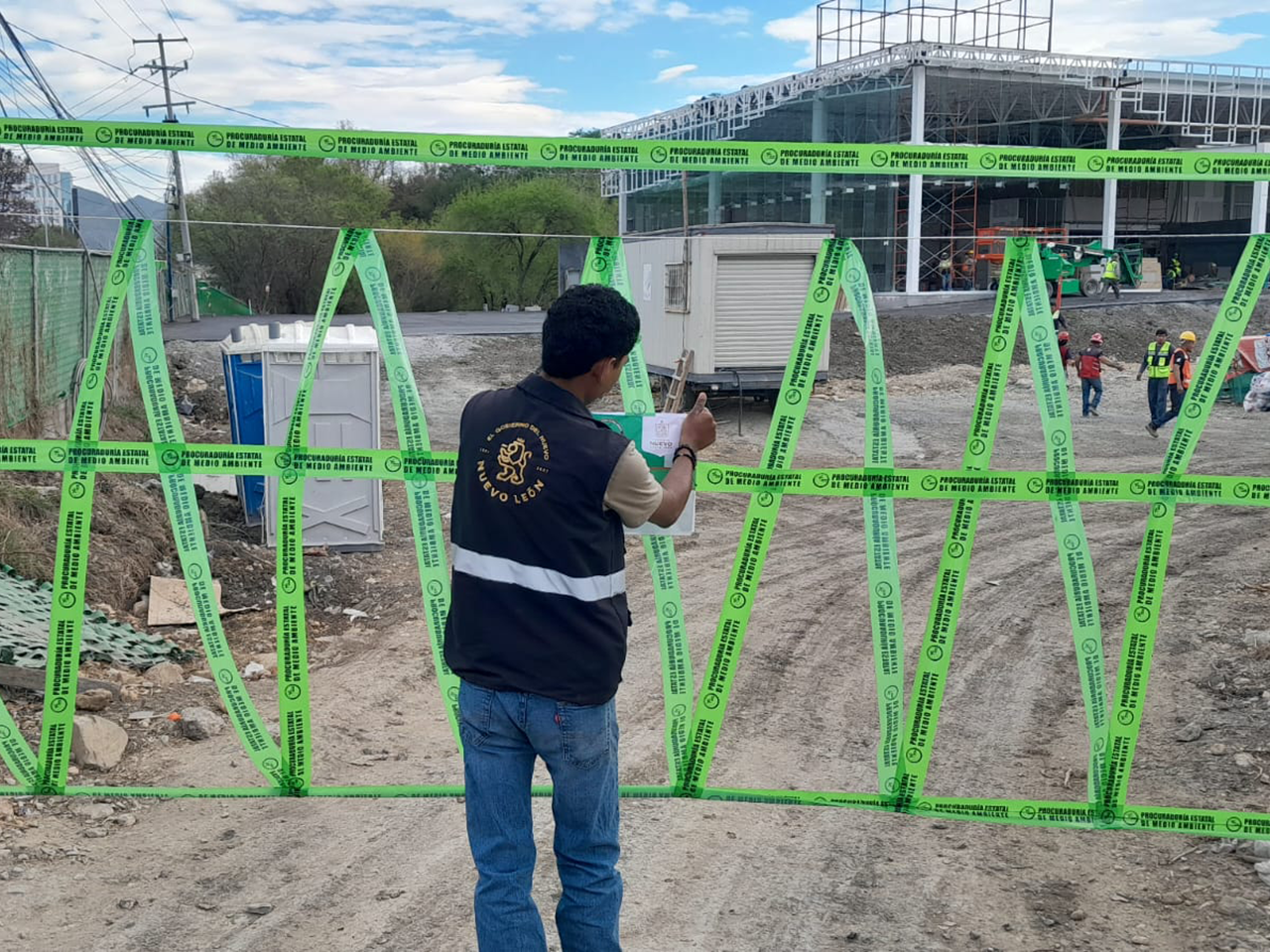 Monterrey, Nuevo León.- Para combatir la contaminación y mejorar la calidad del aire en la zona metropolitana de Monterrey, personal de la Secretaría de Medio Ambiente realizó la suspensión total de una obra en construcción, a cargo de Fundación Inmobiliaria, S.A.P.I de C.V., ubicada en Monterrey a causa de las emisiones generadas, por disposición  inadecuada de residuos de manejo especial y por no exhibir diversos permisos estatales.