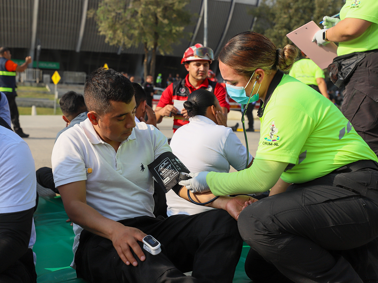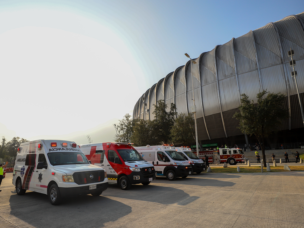 Monterrey, Nuevo León.- A poco menos de 200 días del inicio del Mundial de Fútbol 2026, la Secretaría de Salud a través del Centro Regulador de Urgencias Médicas (CRUM) realizó un simulacro en el estadio BBVA, donde se desarrollará la justa mundialista.