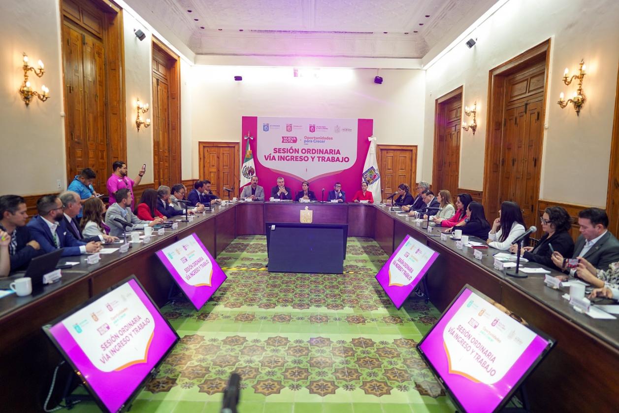 La sesión fue encabezada por el Secretario de Economía, Iván Rivas Rodríguez, el Secretario del Trabajo, Federico Rojas Veloquio, y la Secretaria de Igualdad e Inclusión, Martha Herrera.