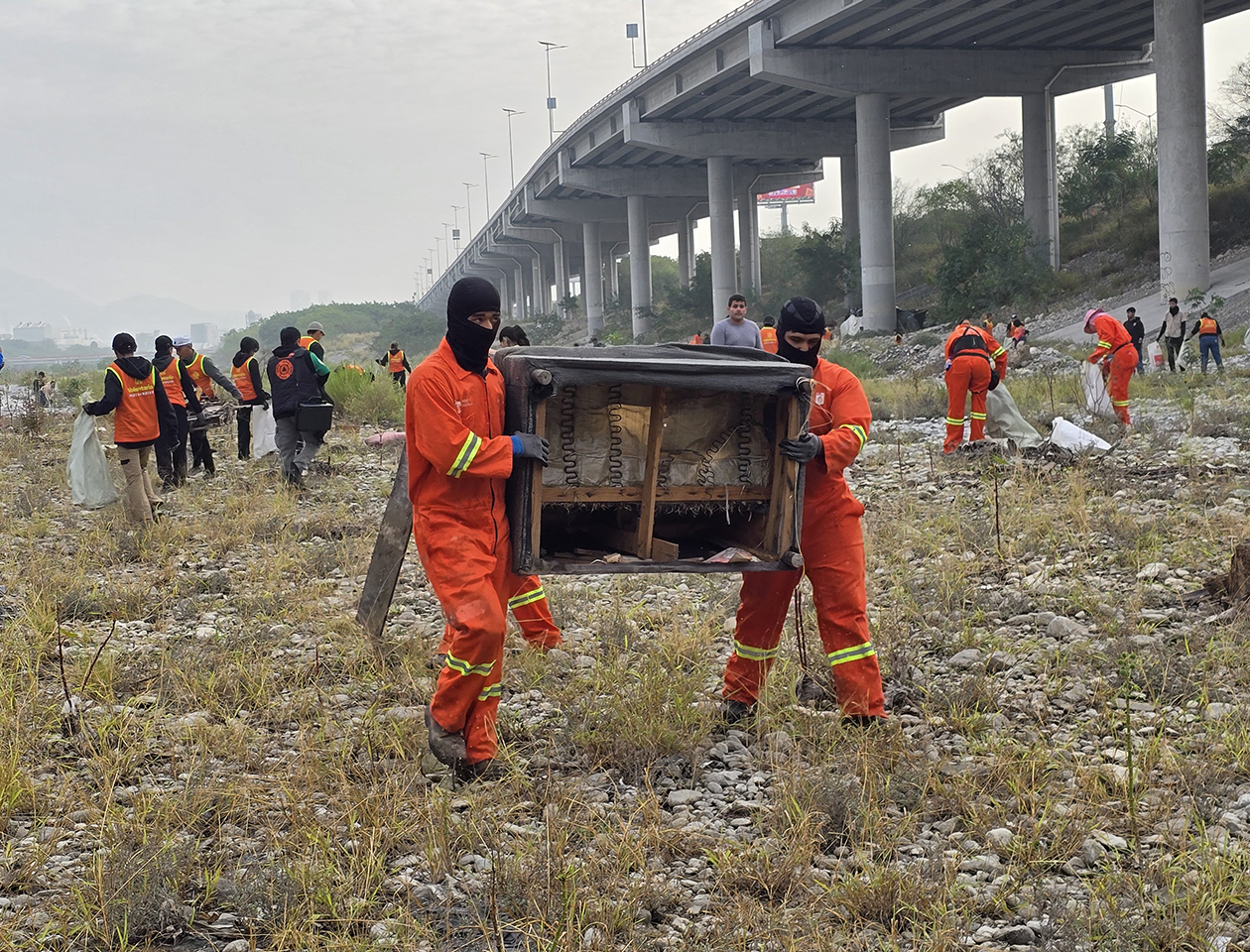 A la decimonovena jornada de limpieza acudieron cerca de 120 voluntarios del Tec de Monterrey y la Preparatoria Militarizada de García, quienes recolectaron 4 toneladas de residuos, 52 llantas y 9 sofás.
