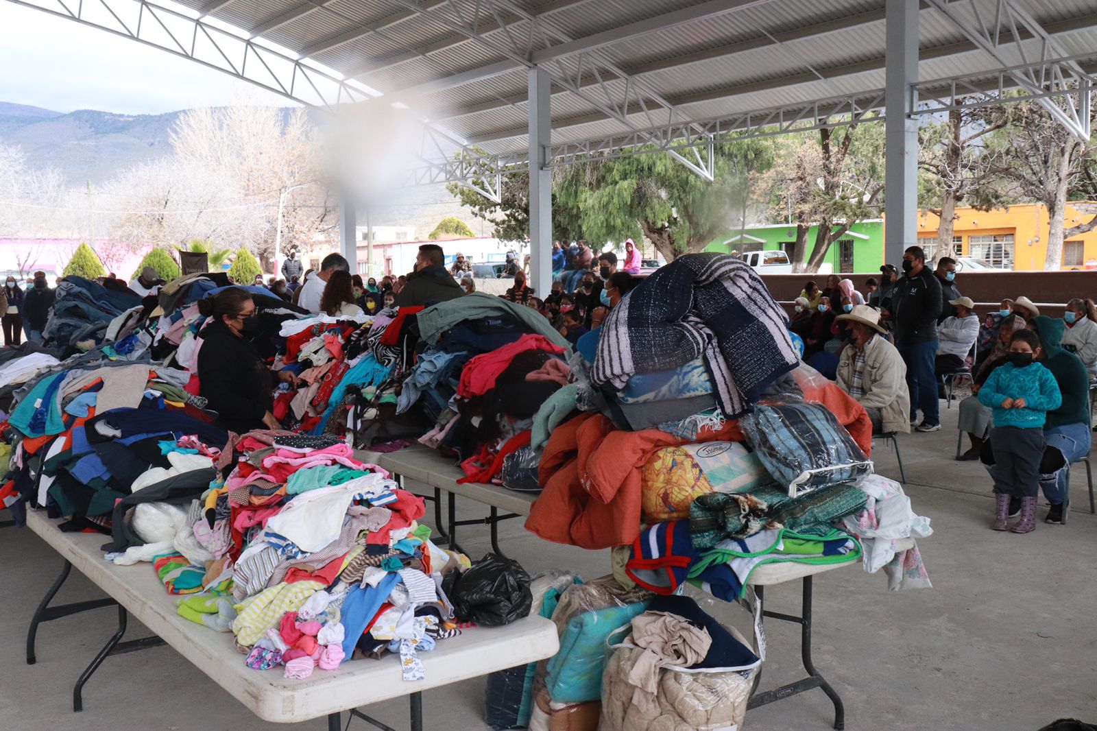 Guadalupe; 300 cobijas, 150 pares de calcetines, 250 comidas y pan con chocolate