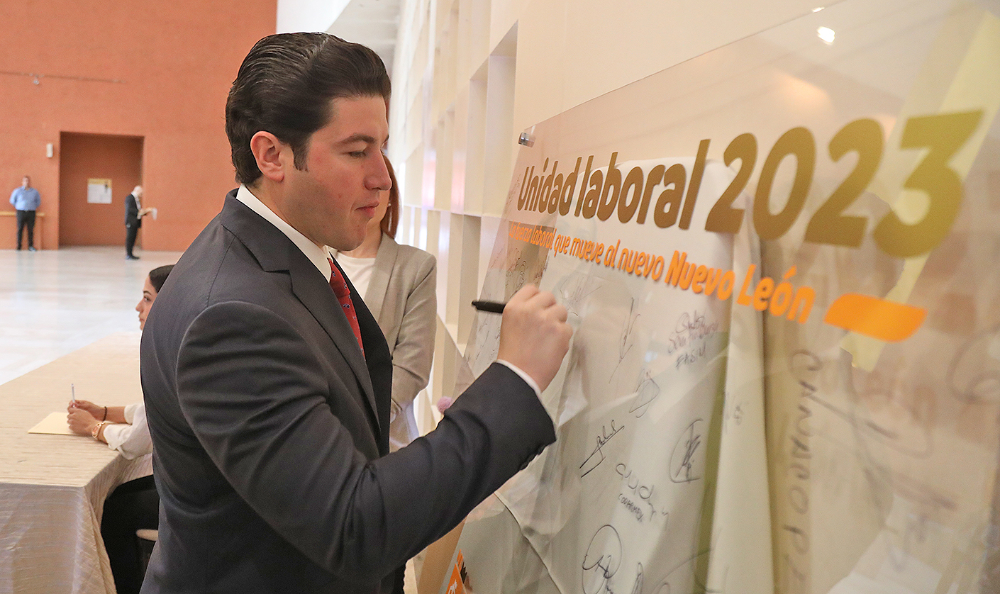 Monterrey, Nuevo León.- En el marco de celebración por el Día del Trabajo, el Gobernador Samuel Alejandro García Sepúlveda elogió hoy la paz laboral que por más 24 de años ha permanecido en la entidad e hizo votos por continuar cerrando filas para que la prosperidad sea constante para Nuevo León.