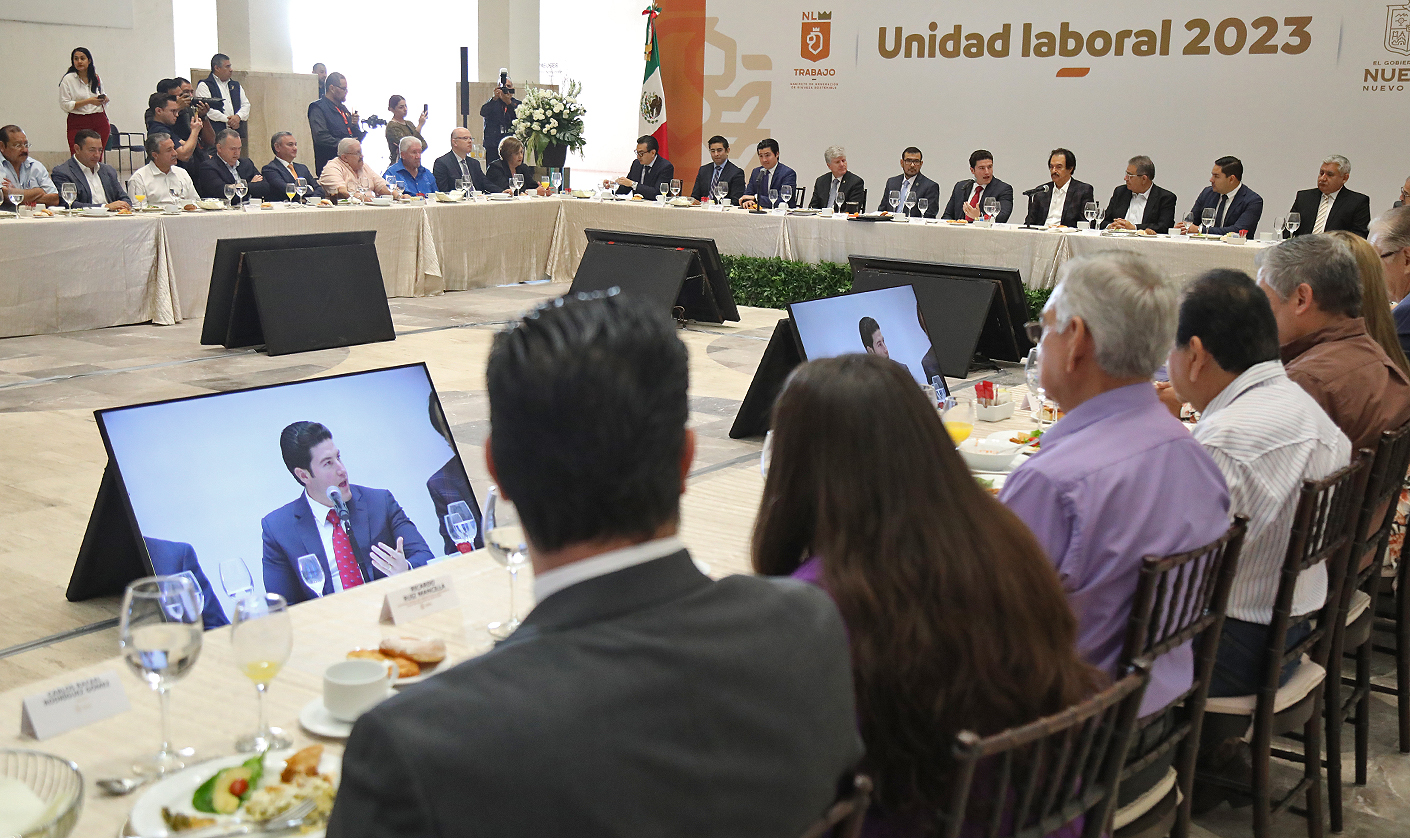 “Llevamos un año siete meses ya de gobierno, creo, estimo que vamos avanzando en las problemáticas y hay que meter turbo porque entre más rápido la resolvamos mucho mayor será la productividad de Nuevo León y en ese sentido, pues primero que nada quiero agradecerles la paz laboral que tenemos; se dice fácil, pero son ya casi 24 años de paz laboral”, mencionó.