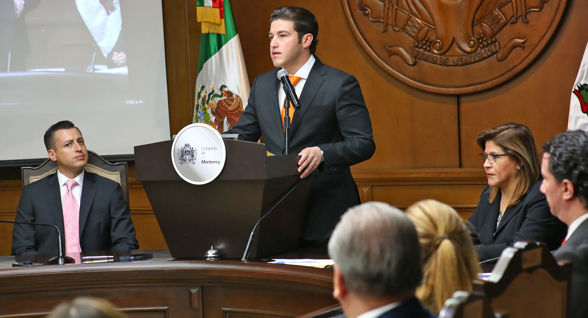 Ante representantes de los poderes Legislativo y Judicial, así como del Ejército Mexicano, el Gobernador Samuel García refrendó el compromiso de su Administración para apoyar en todo al municipio de Monterrey.