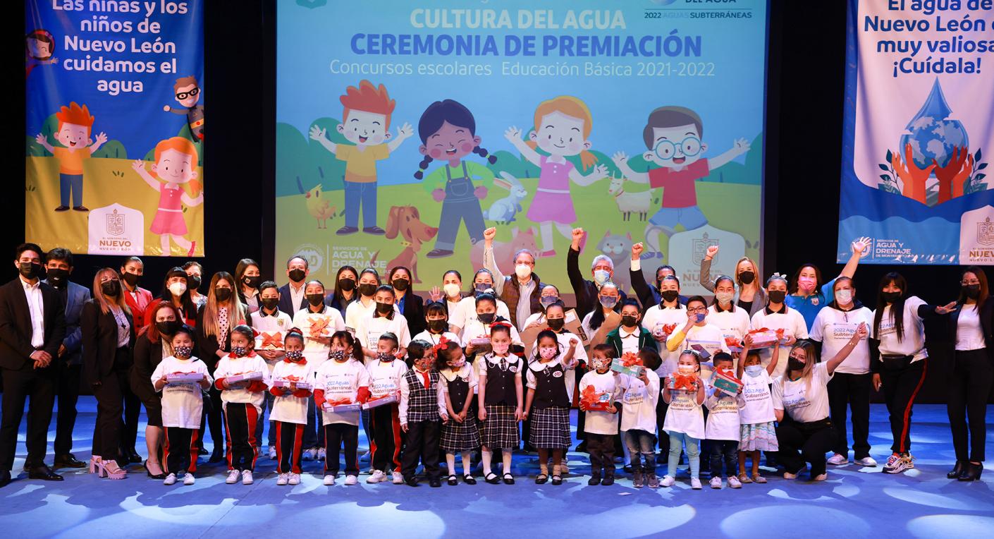 Con la participaron de alrededor de 500 estudiantes de nivel básico del ciclo escolar 2021-2022 de todo Nuevo León se realizó la Ceremonia de Premiación del Programa Estatal Cultura del Agua, que a través de la creación de canciones y actuaciones, carteles, y campañas resaltaron el cuidado del vital líquido.