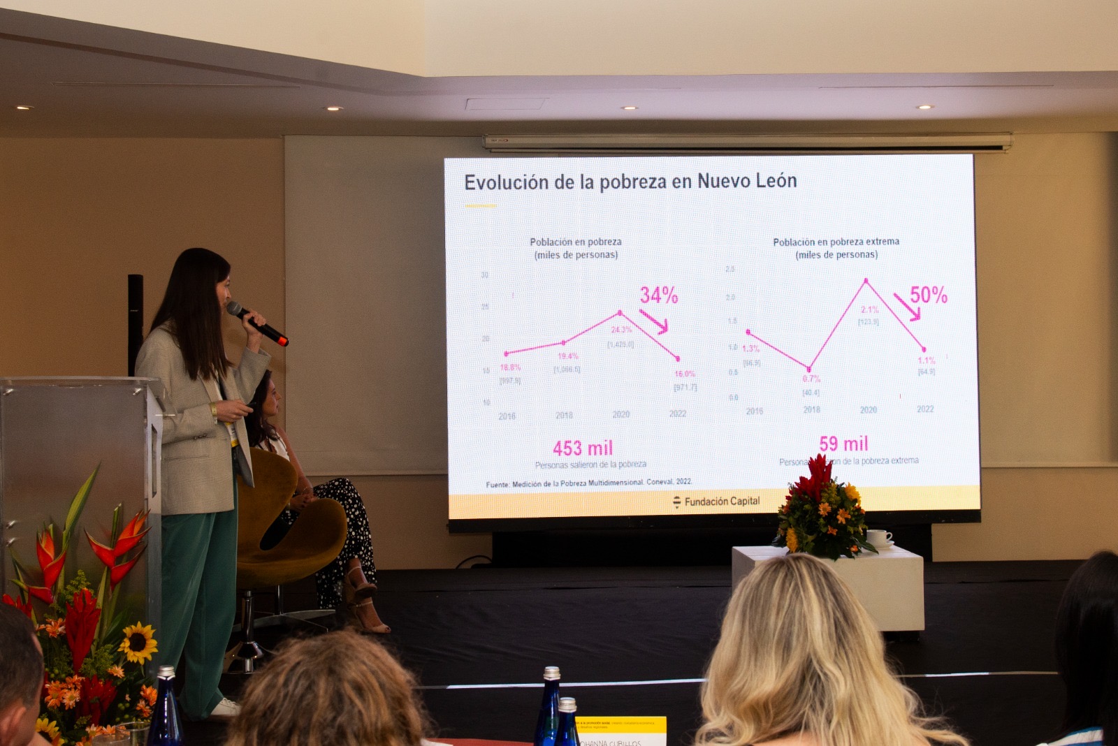 Monterrey, Nuevo León.- La Secretaría de Igualdad e Inclusión de Nuevo León presentó en Santa Marta, Colombia, la política social del Gobierno estatal, La Nueva Ruta: Incluir para Ser Iguales, estrategia que impacta en más de 1 millón 700 mil personas y ha contribuido a reducir la pobreza extrema en un 50 por ciento.