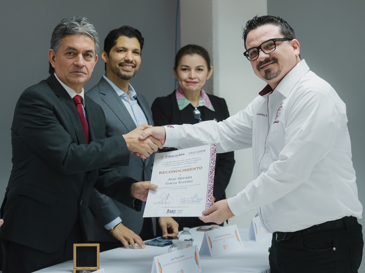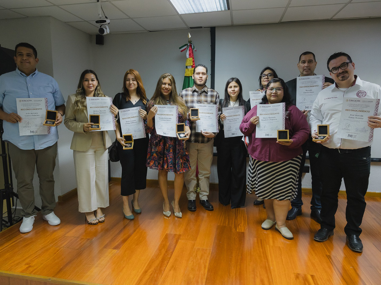 El “Reconocimiento a la Práctica Educativa 2025” es convocado por la Secretaría de Educación Pública (SEP) y la Unidad del Sistema para la Carrera de las Maestras y los Maestros (USICAMM), con el propósito de impulsar prácticas docentes que transformen los procesos educativos a partir de los planes y programas de estudio de la Nueva Escuela Mexicana. Las maestras y los maestros galardonados recibieron un diploma y una medalla como parte de este reconocimiento nacional.